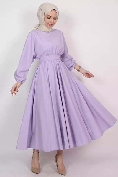 Jalya Encolure Boutonnée Cordon de Serrage Robe Hijab Mousseline - Poudre