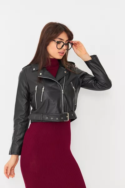 Blouson de motard en similicuir avec fausse fourrure à l’intérieur