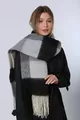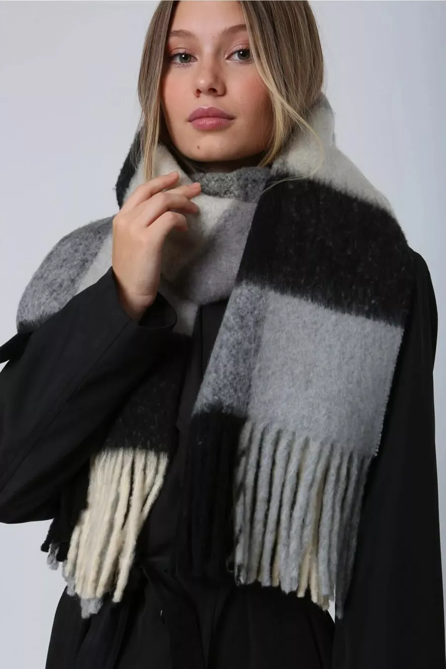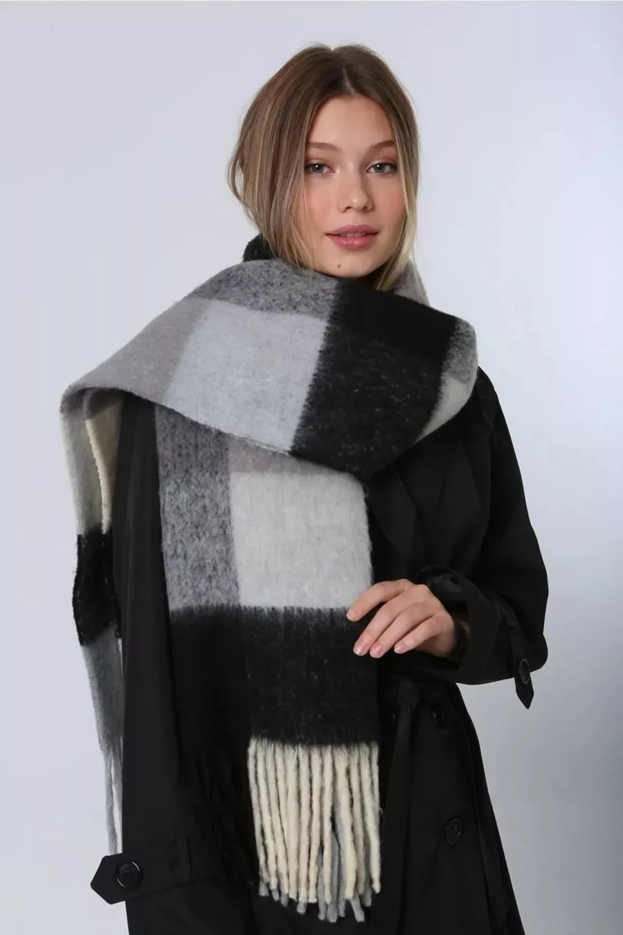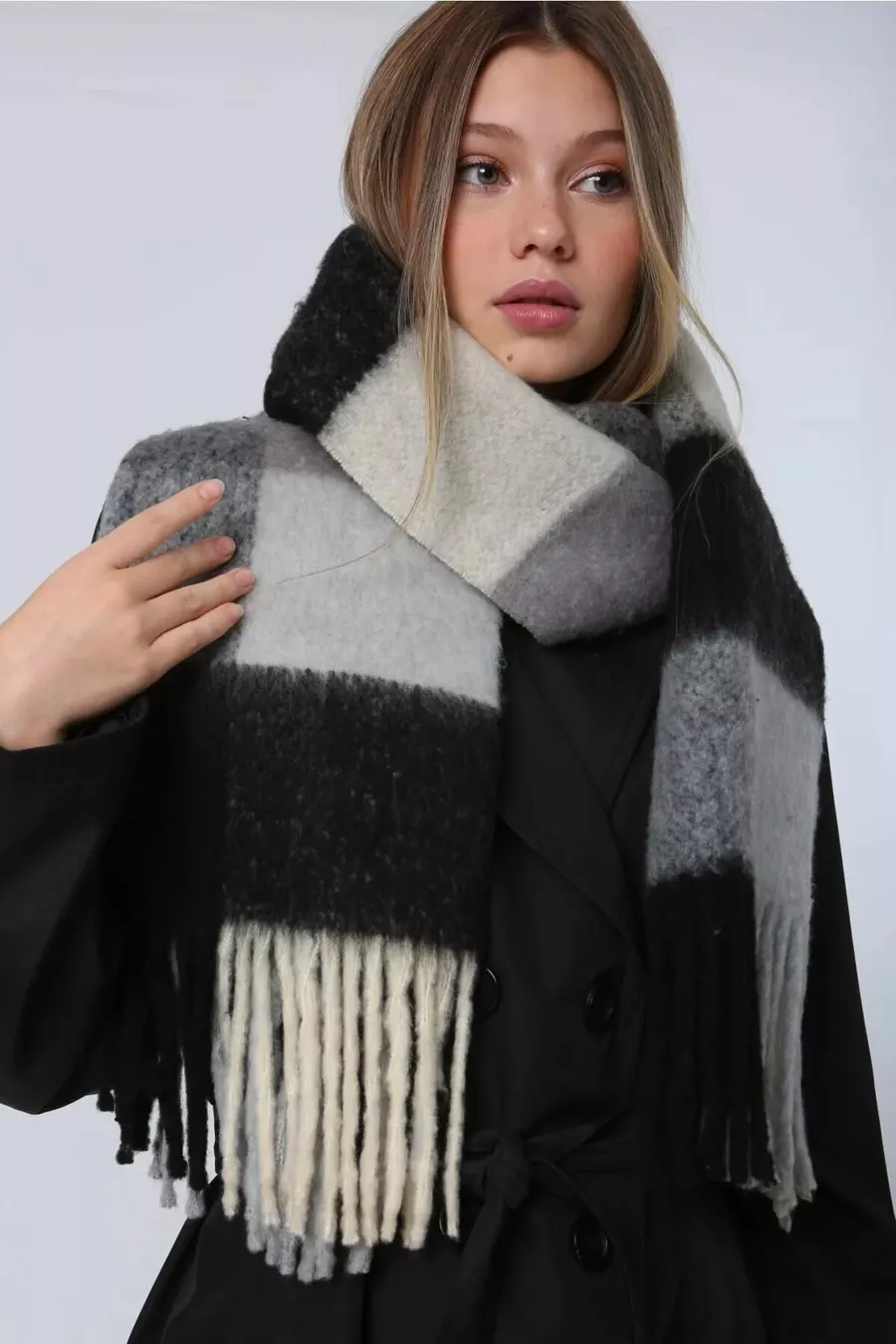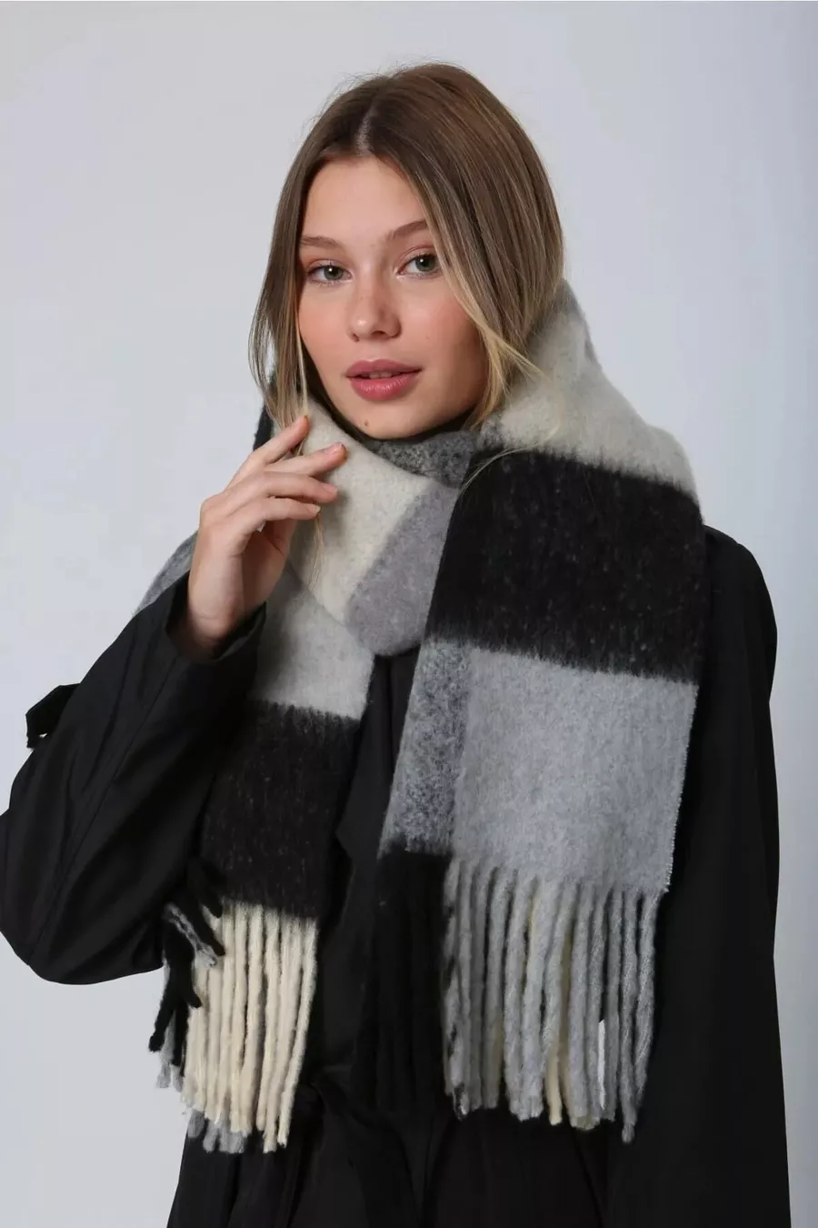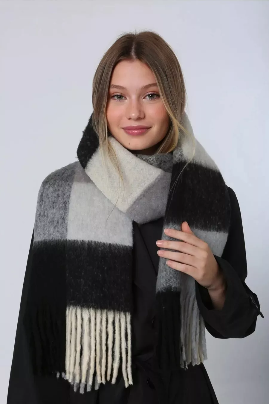 Écharpe Châle en Boucle avec Motifs et Franges cm Noir