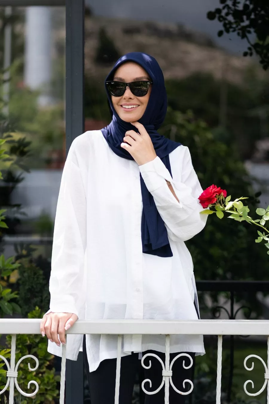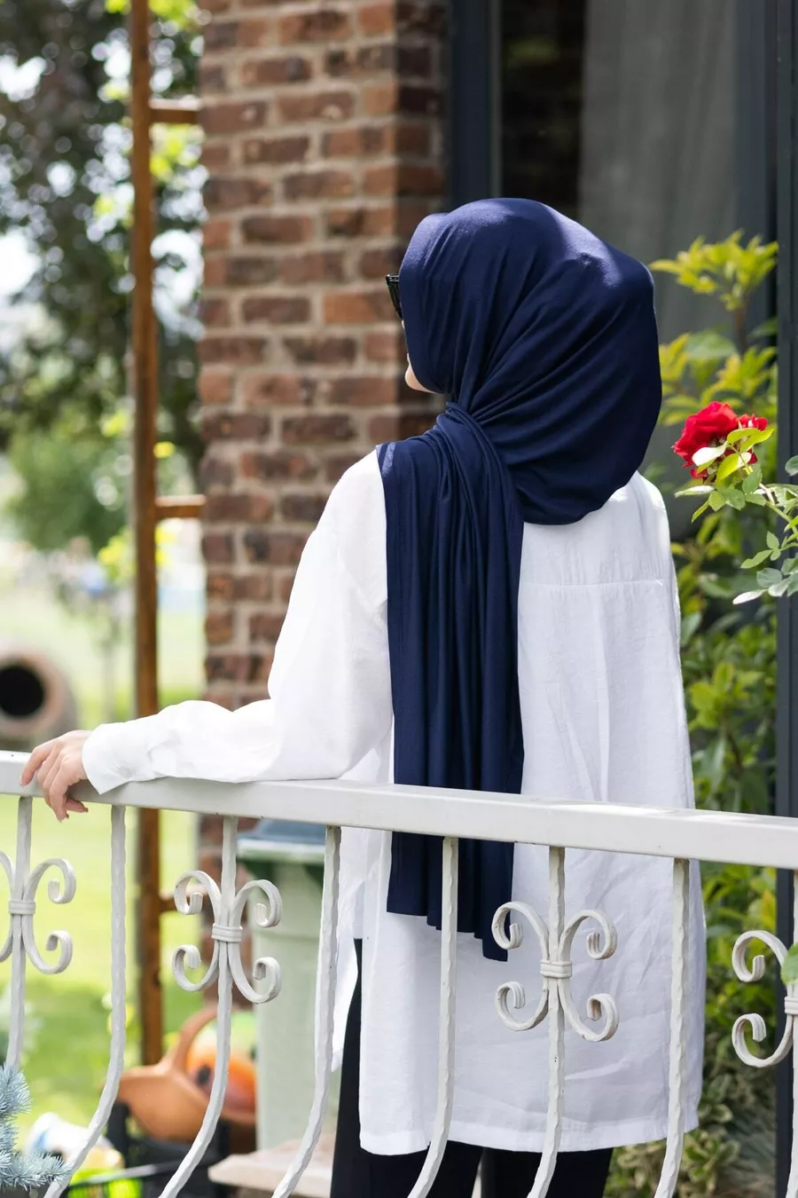 Écharpe châle pratique en jersey bleu marine