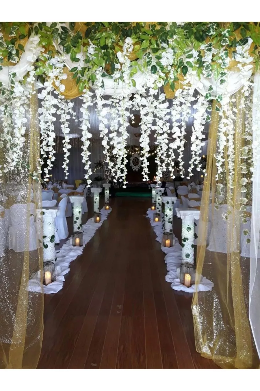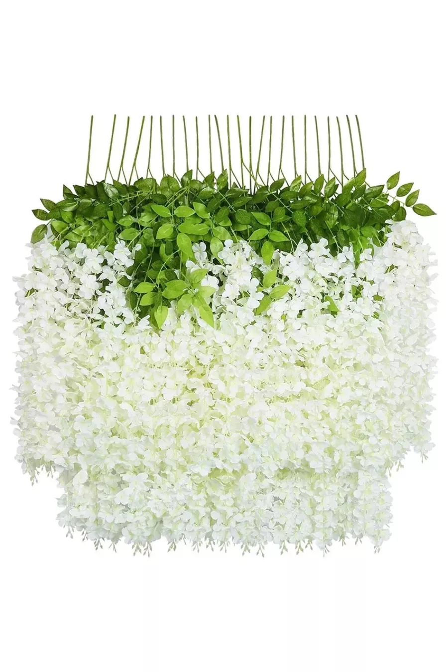 3 branches d'acacia blanche tombante, chaque branche avec 3 grappes, décoration pour fiançailles et mariage