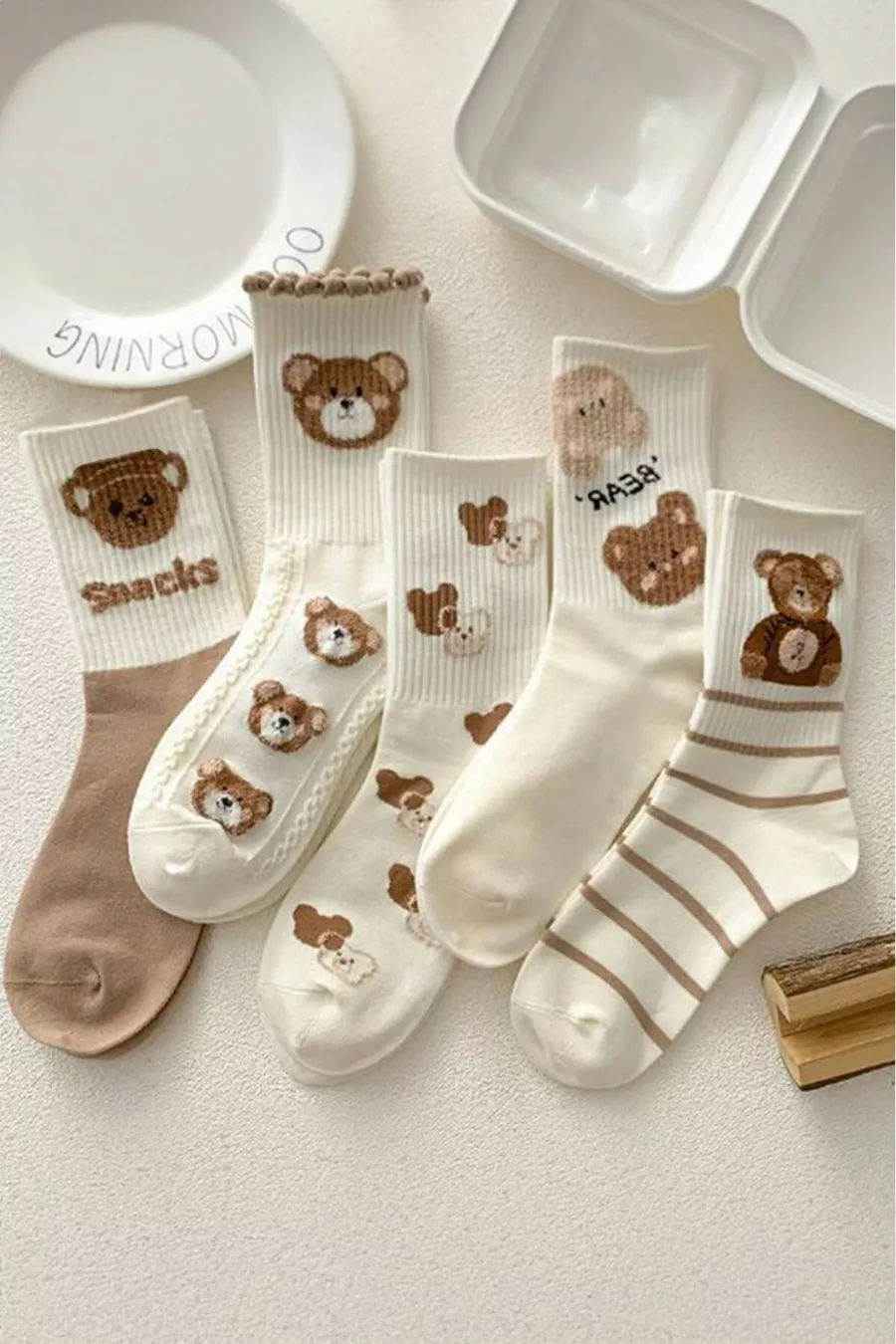 5 Paires de Chaussettes Confortables à Motif Petit Ours