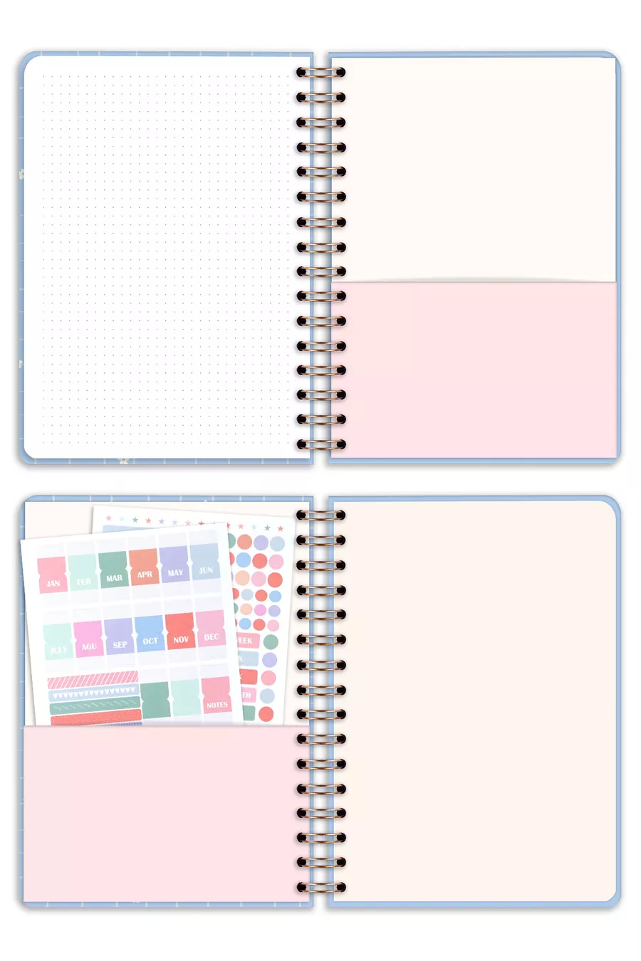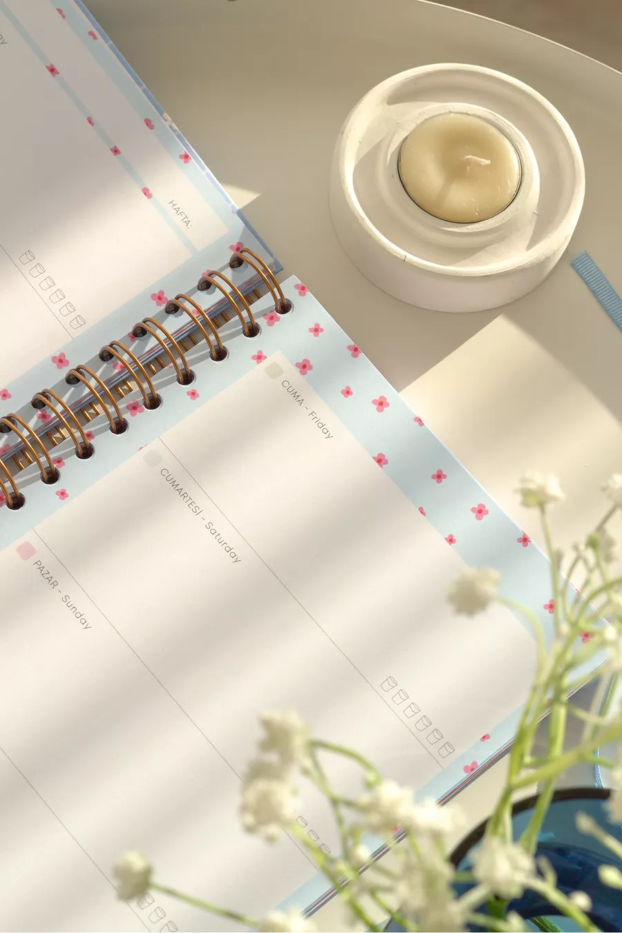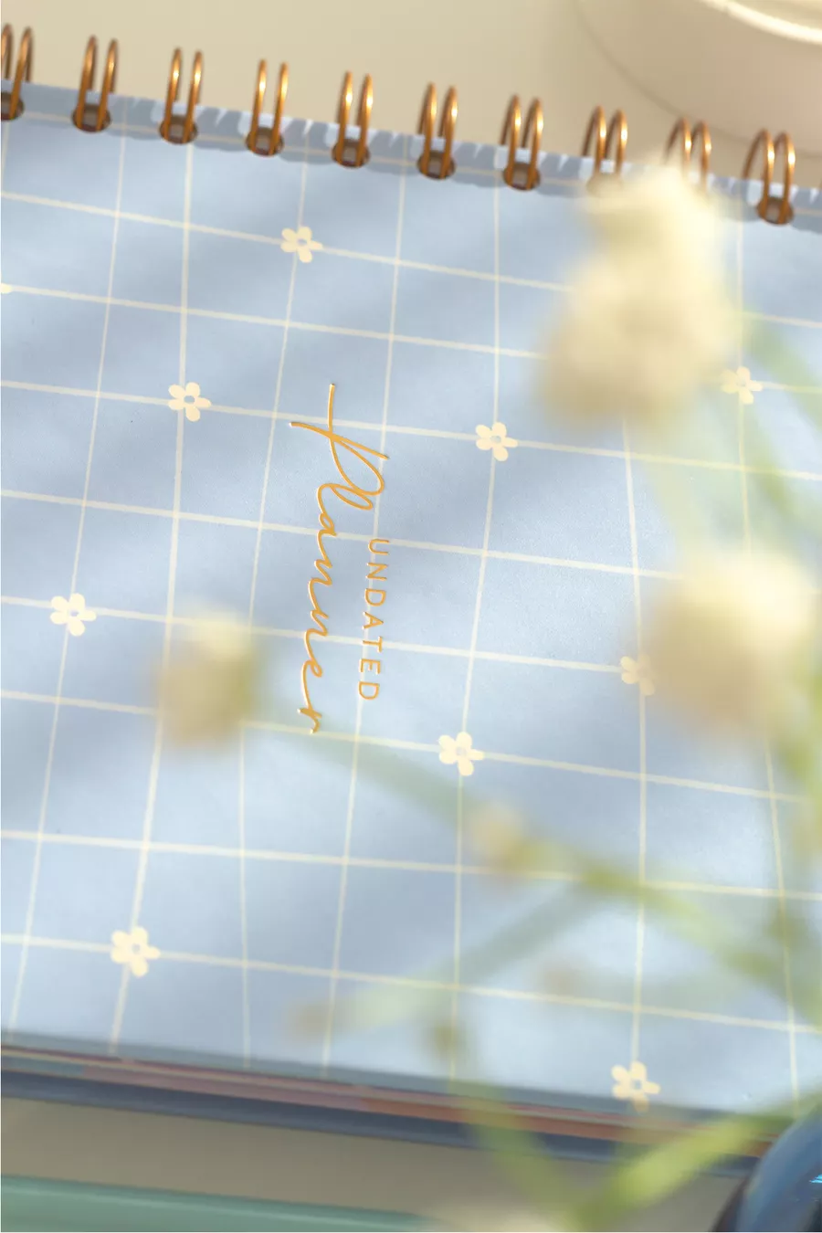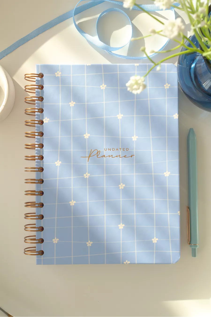 Agenda planificateur à spirale, sans date, avec pages de motivation, marguerite bleue