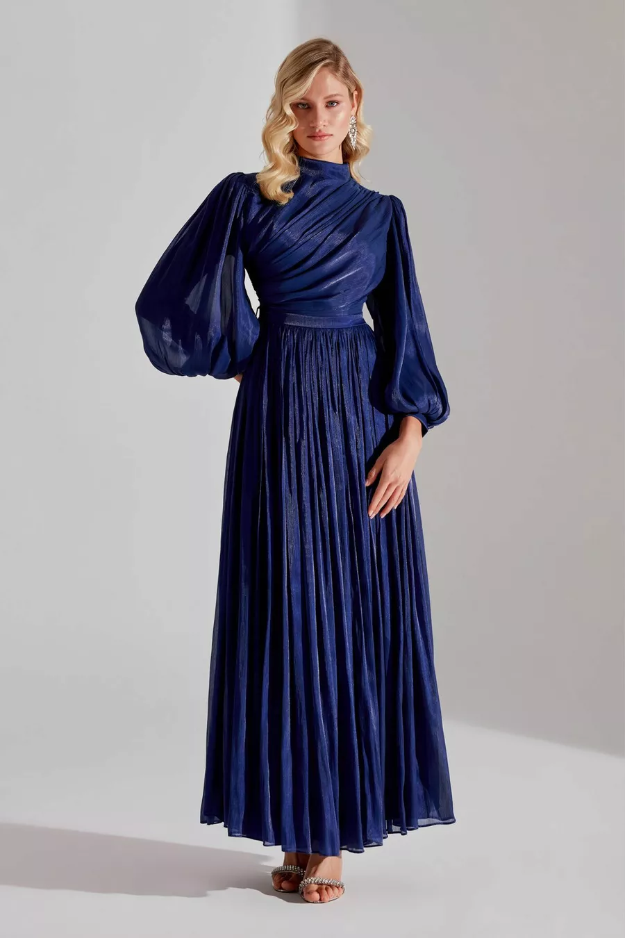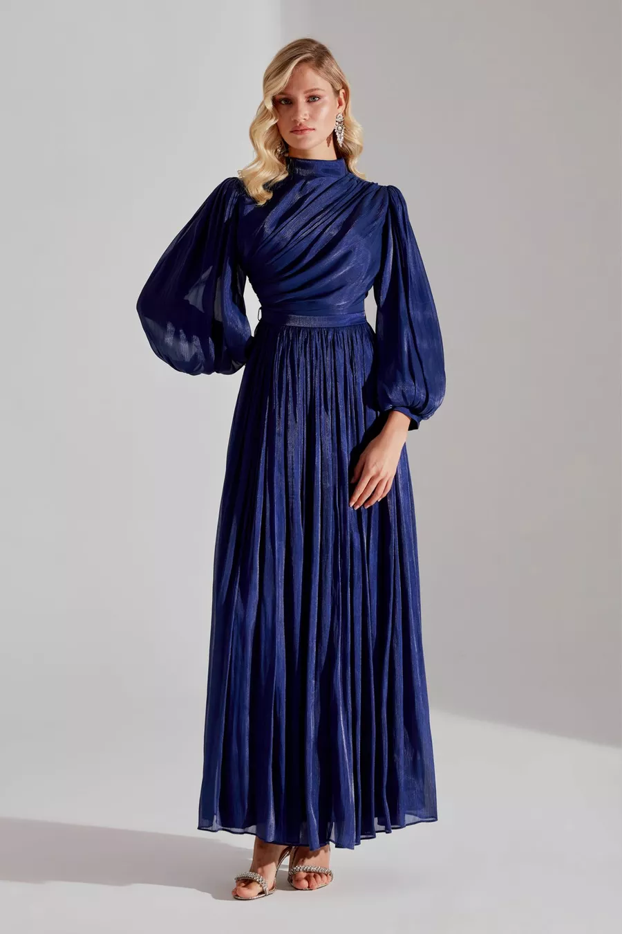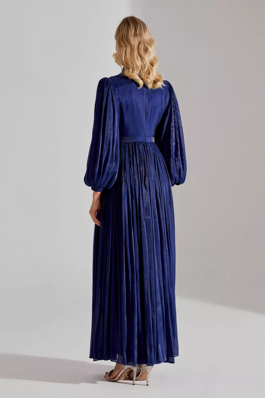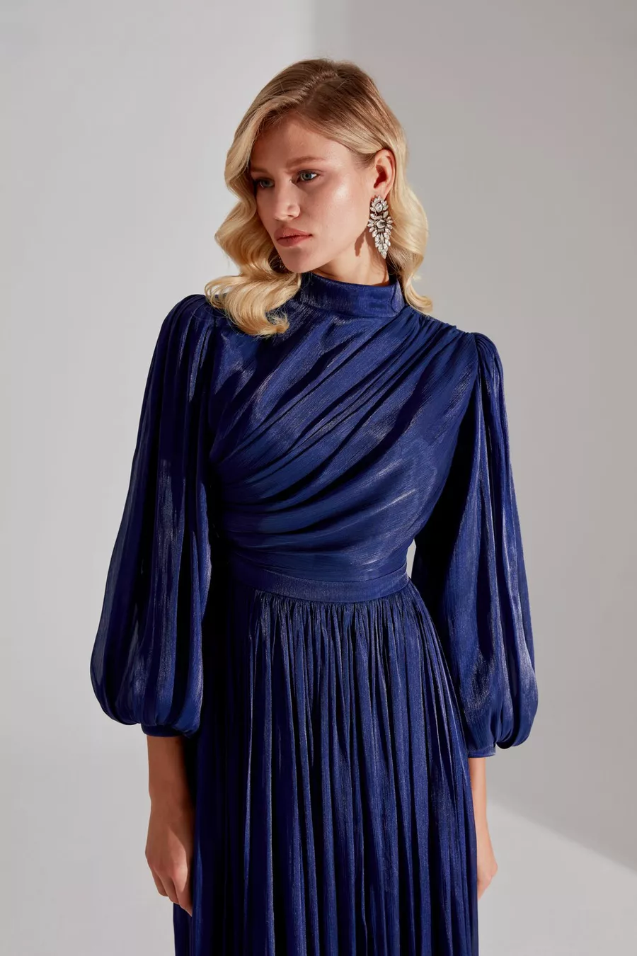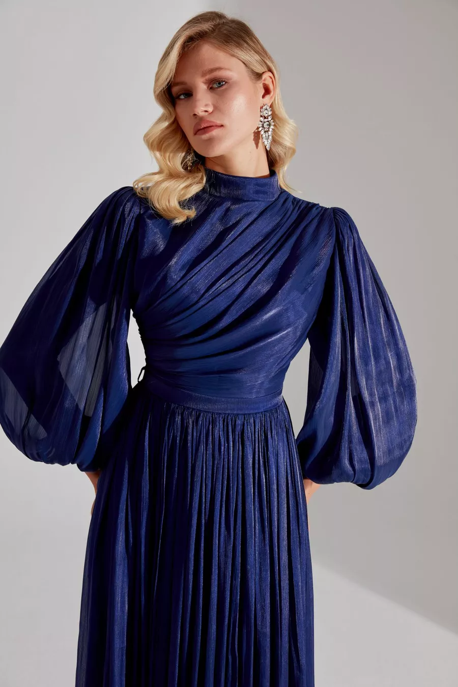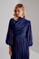 ALAINA ROBE ROBE DRAPÉE BLEU MARINE À MANCHES BALLON