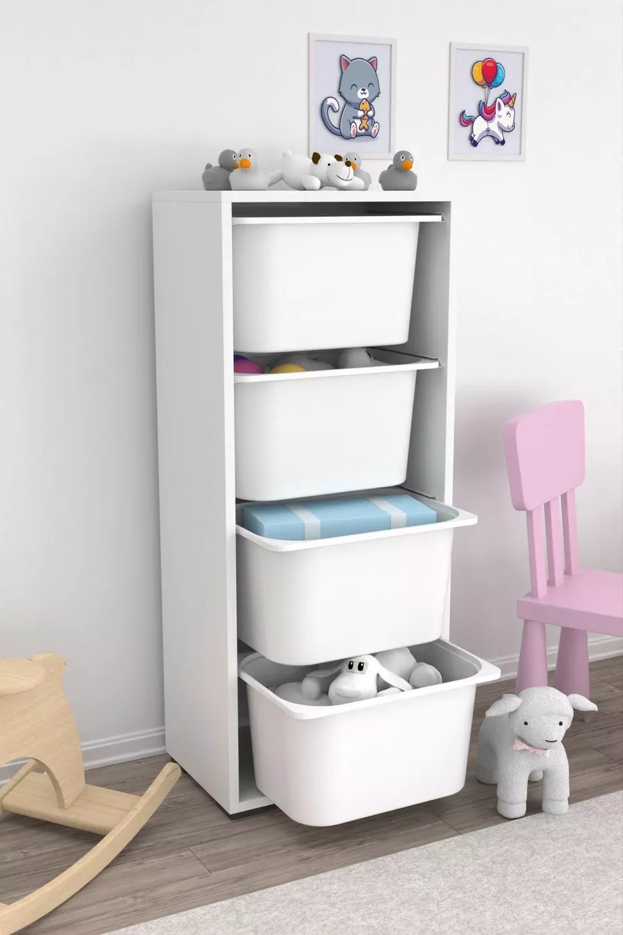 Matériau : Aggloméré Nombre de tiroirs : 4 Largeur : 45 cm Profondeur : 30 cm Hauteur : 109 cm Couleur : Blanc Thème / Style : Moderne Origine : TR Âge : 3 ans et plus Caractéristique : Long