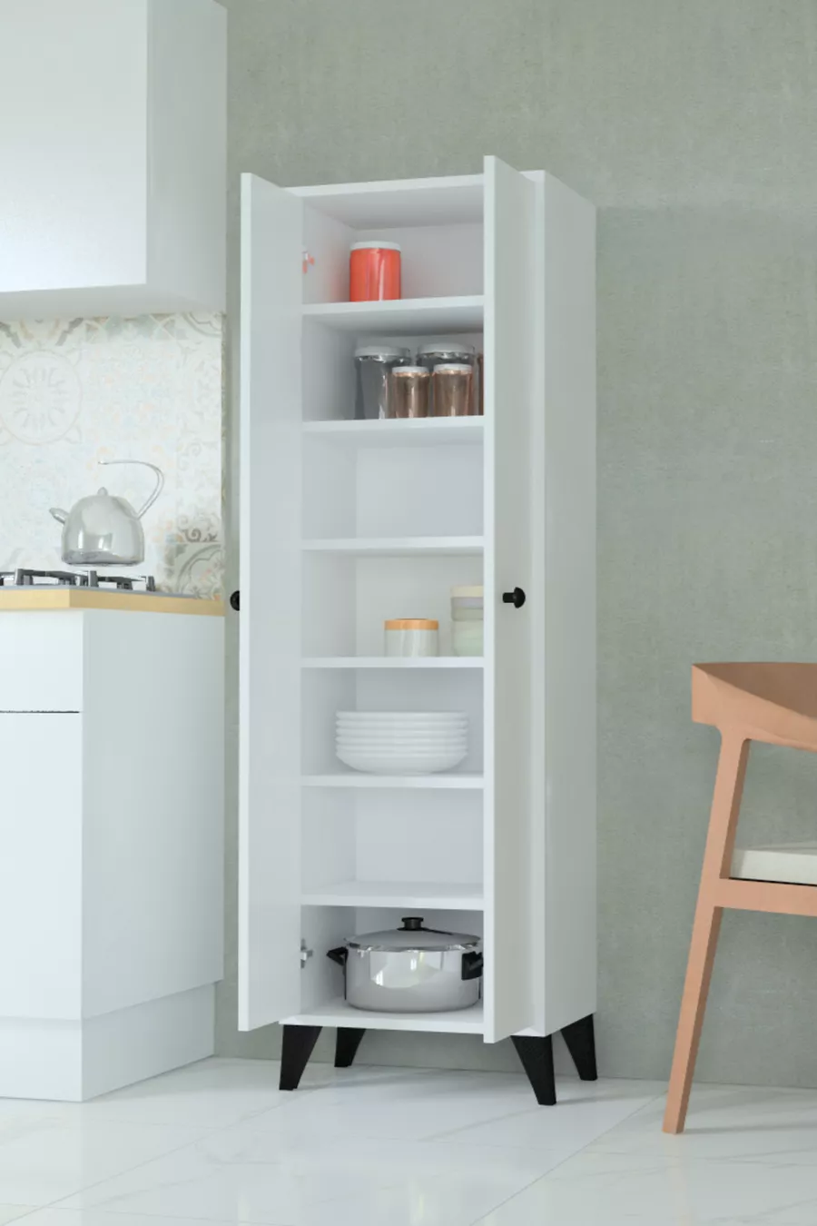 Nombre de portes : 2 Matériau : Panneau de particules plaqué Couleur : Blanc Fonction : Avec porte Dimensions de l'armoire : 160 x 40 x 35 Modèle : Module inférieur Style : Scandinave Origine : TR