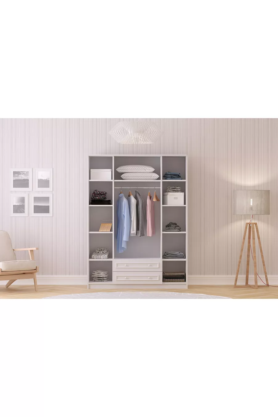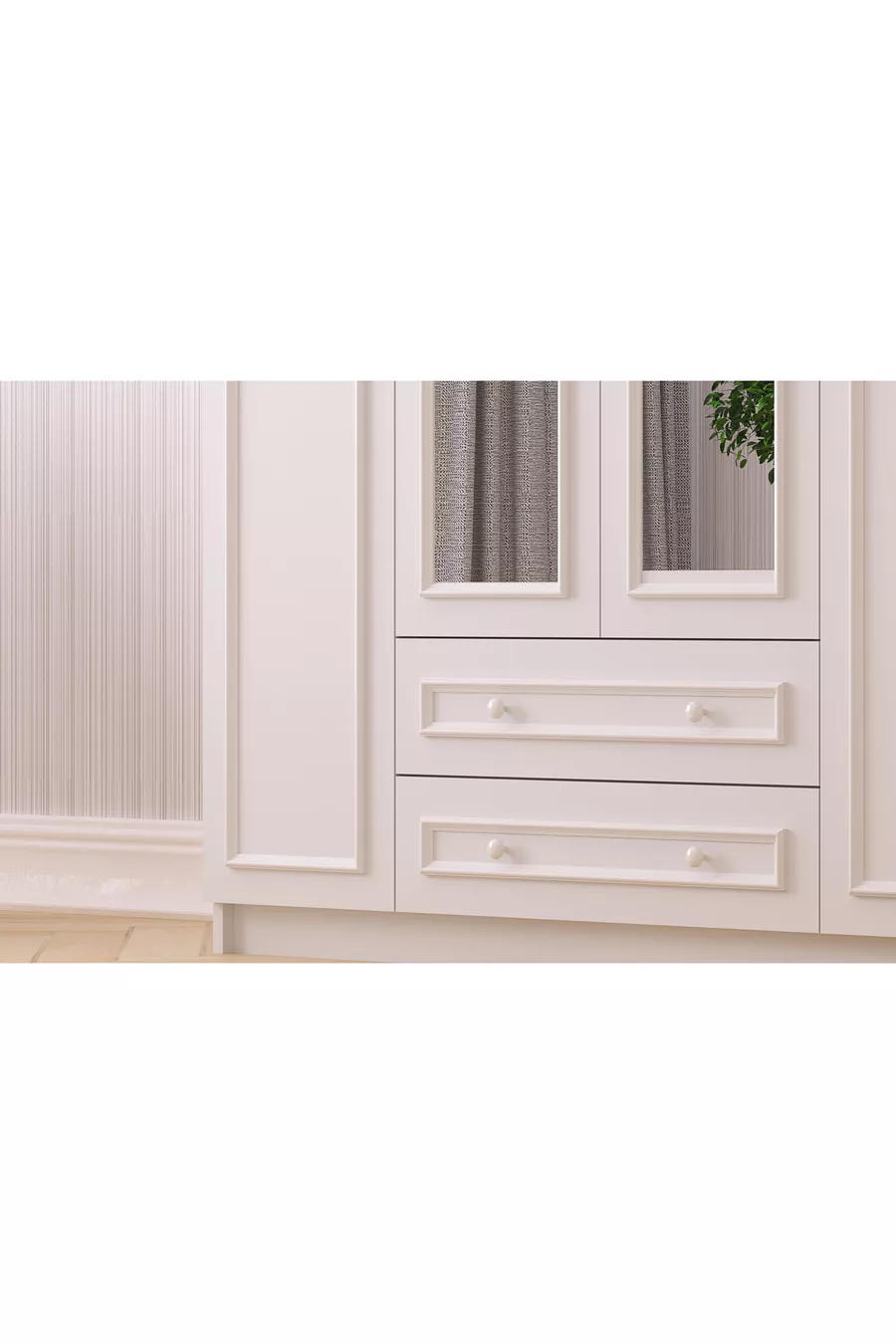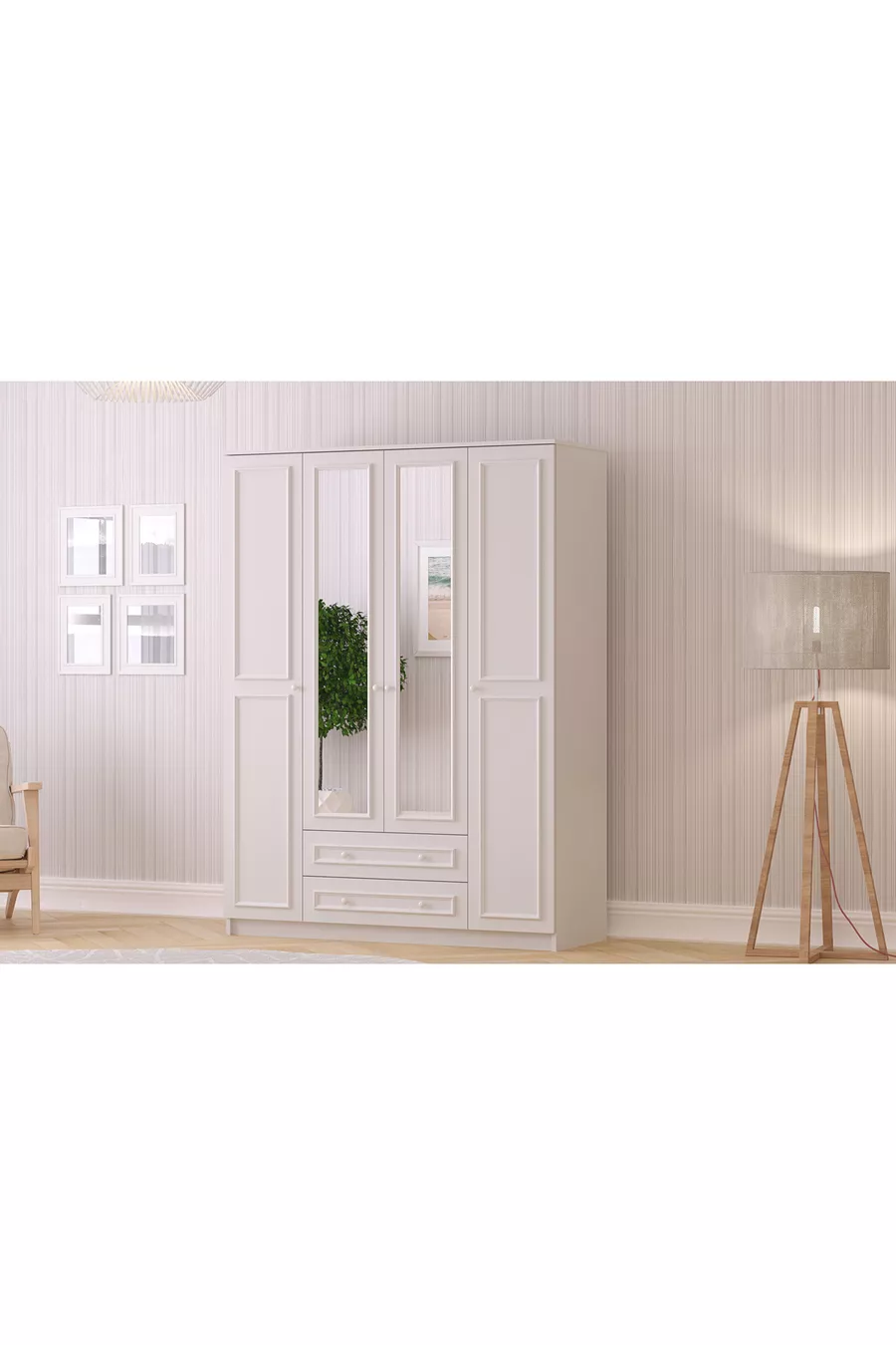 Armoire Lina Country 4 portes 2 tiroirs avec miroir