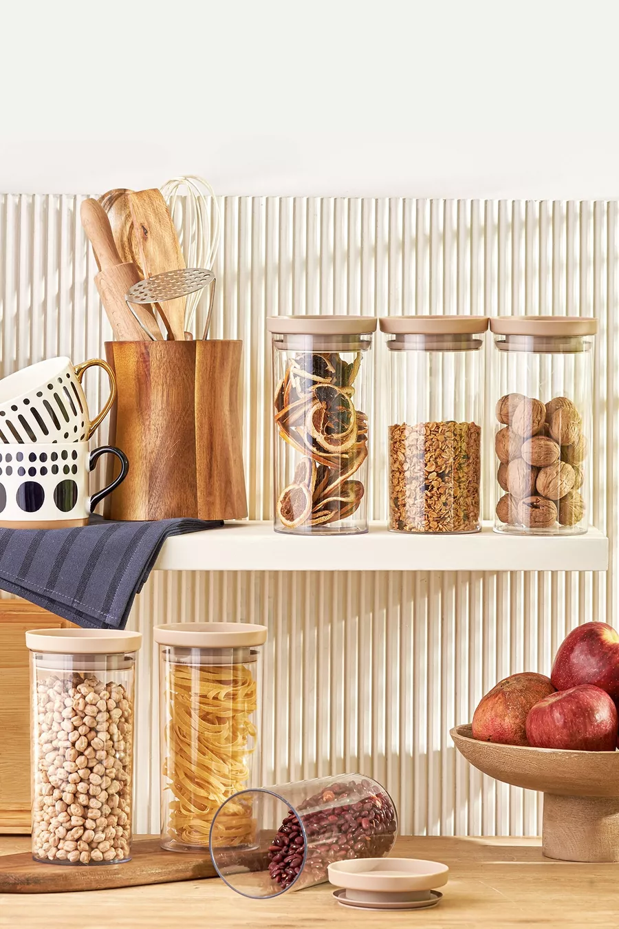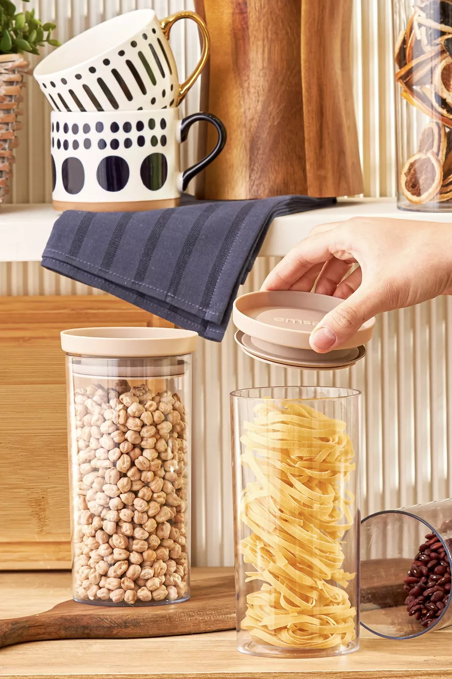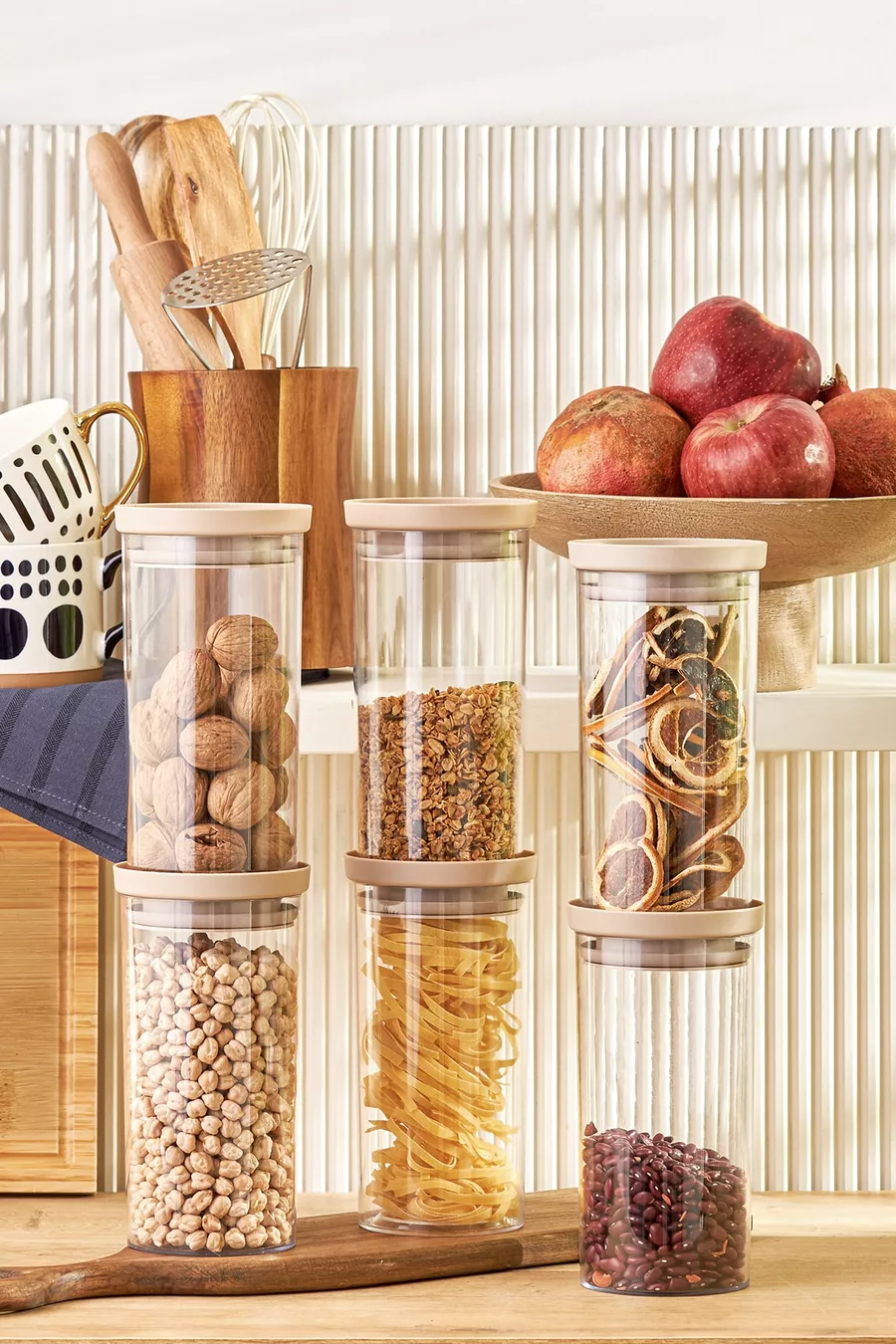 Arya Grand Pot/Bocal de Stockage 6 pièces Beige