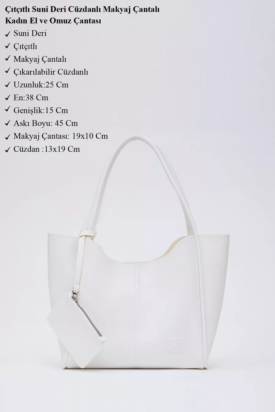Blanc Sac à main et à bandoulière pour femme avec bouton-pression Trousse de maquillage avec portefeuille en similicuir avec boutons-pression L : L : L : cm