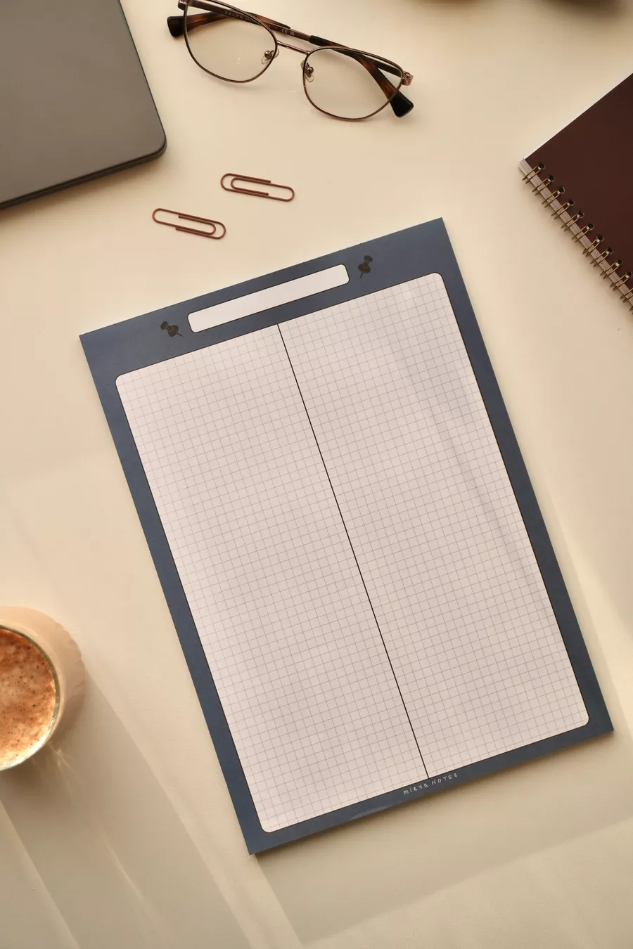 Type de couverture : Cartonné Type de spirale : Non spécifié Taille : Moyenne Couleur : Bleu marine Type de cahier : Carnet de notes Type de pages : À carreaux Format du papier : A4 Nombre de pages : 50 feuilles Origine : TR