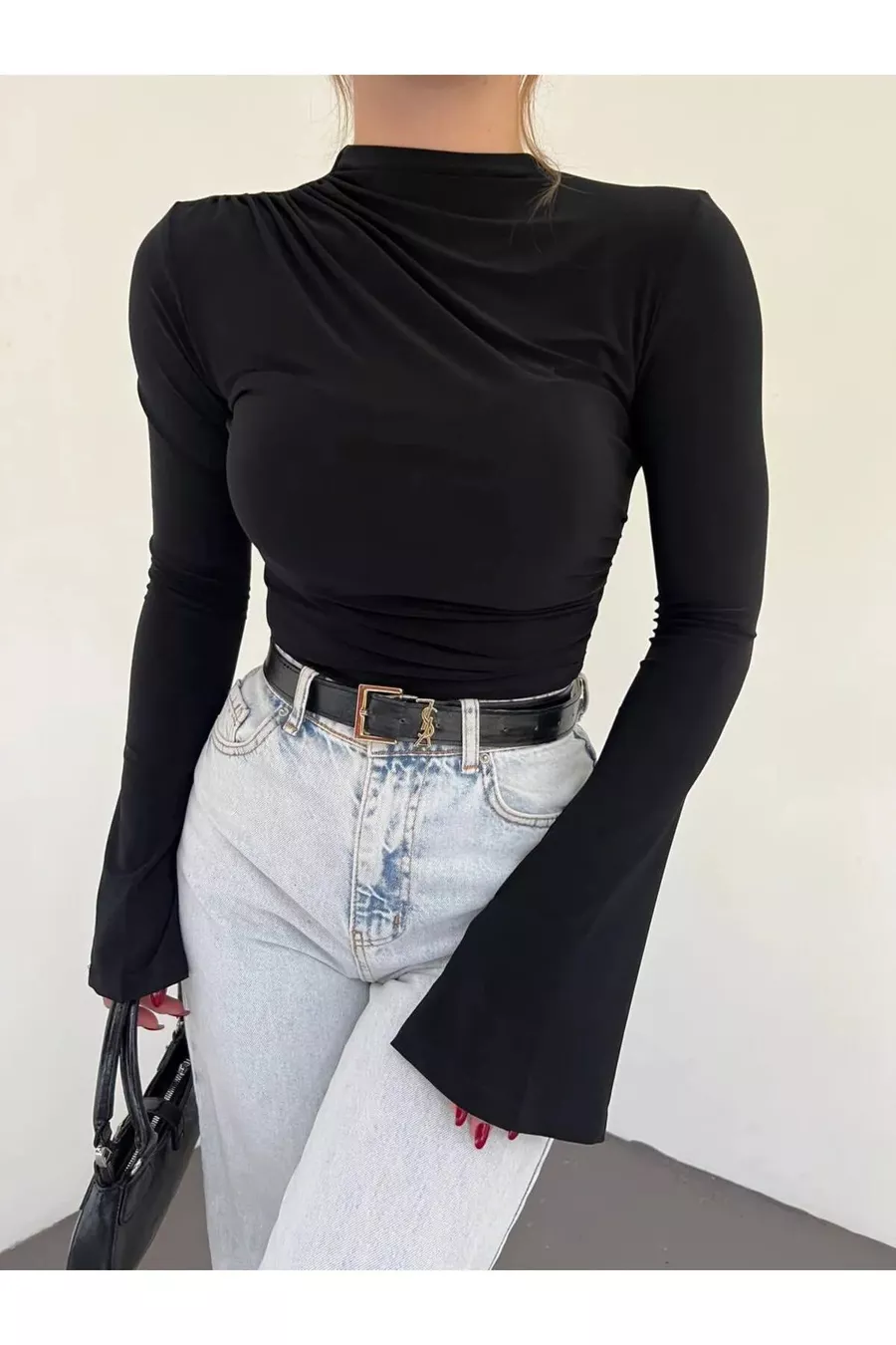 Motif : Uni Coupe : Regular Type de col : Col cheminée court Type de tissu : Tissé Matériau : Polyester Type de manches : Manches espagnoles Couleur : Noir Poches : Sans poches Détail du produit : Froncé Type de produit : Uni Épaisseur : Moyenne Doublure : Non doublé Longueur : Regular Collection : Basic Longueur des manches : Longue Occasion : Jour / Nuit Silhouette : Crop Type de tissage : Crépon Caractéristique supplémentaire : Aucune caractéristique supplémentaire Persona : Féminin Ceinture : Sans ceinture Technique d'impression/broderie : Sans impression Type de fermeture : Sans fermeture Détails de durabilité : Non Instructions de lavage : Type 1 Contenu de l'emballage : Indivuel Origine : TR