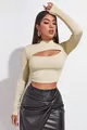 Blouse crop top femme écru à découpe avec décolleté et manches longues