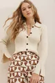 Blouse en tricot pour femme, col polo écru, boutons sur le devant, manches côtelées avec baleines