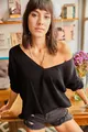 Blouse en tricot femme noire à col V ample
