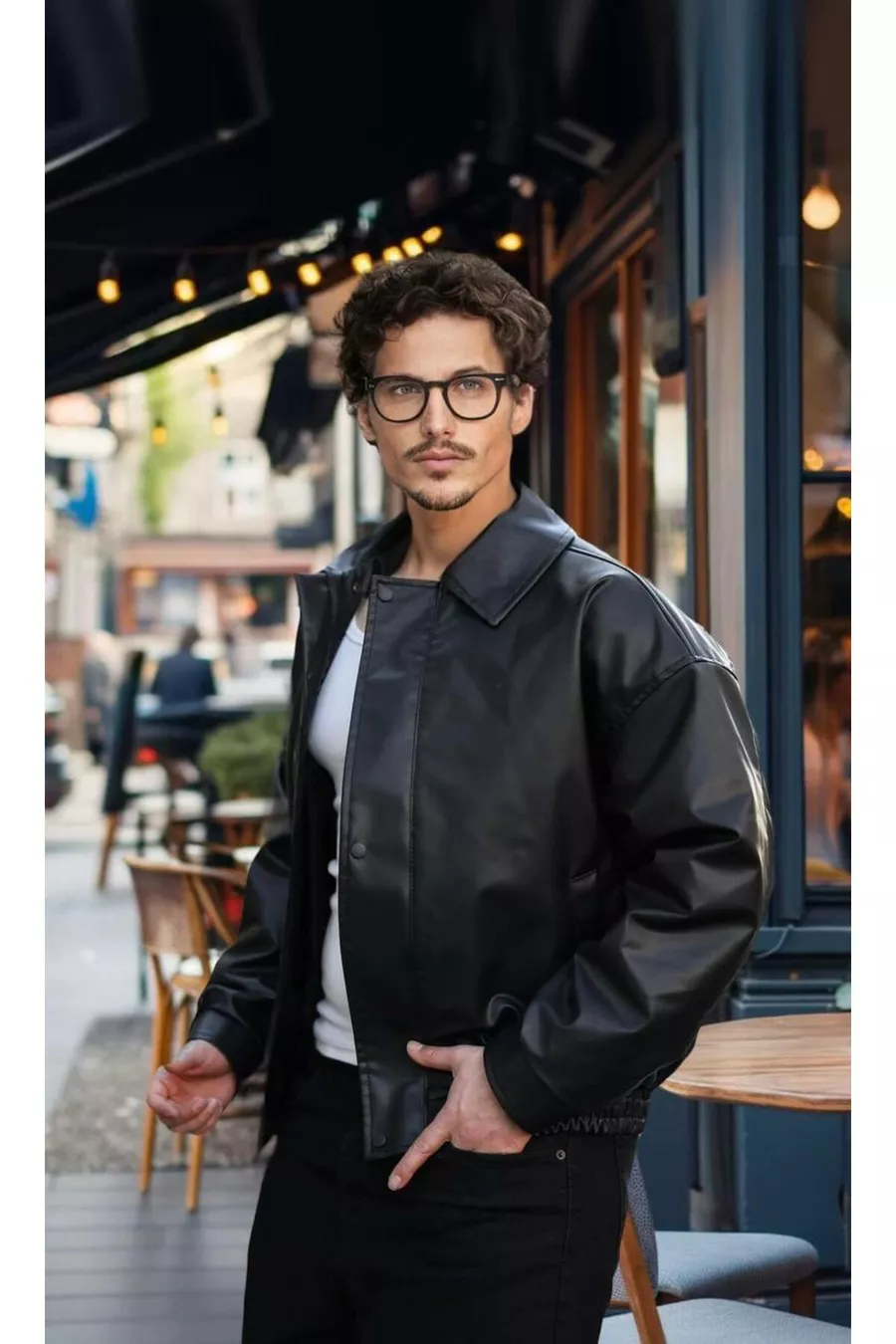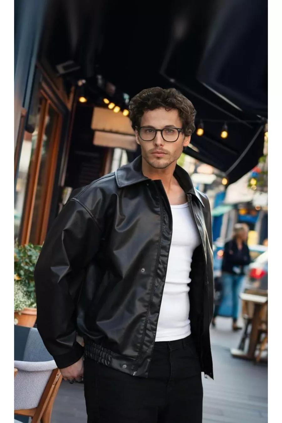 Blouson aviateur en cuir oversize Old Money Premium unisexe