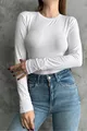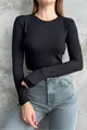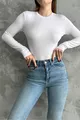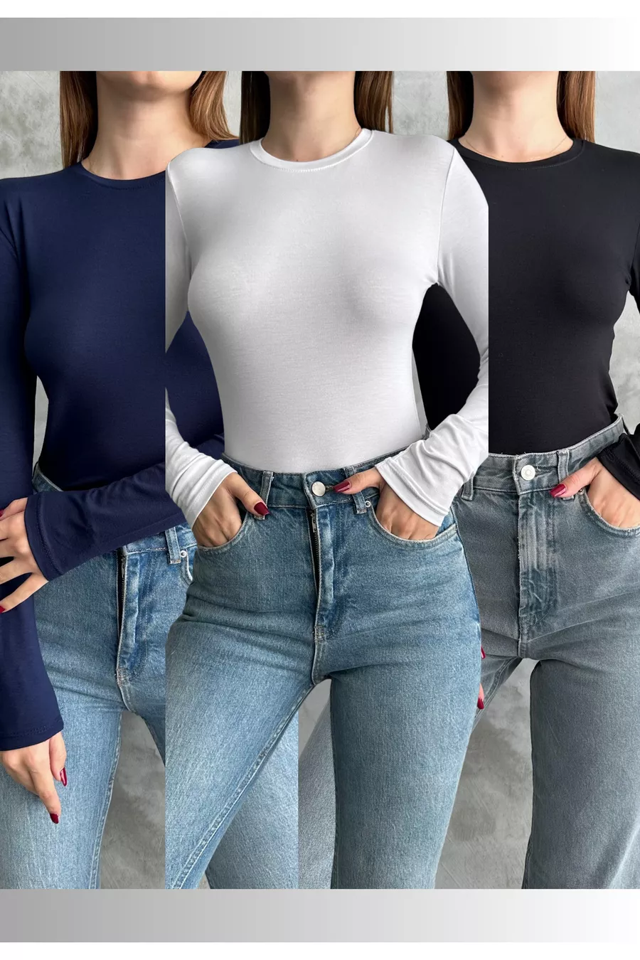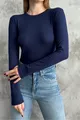 Body basique à manches longues col rond tricolore noir-blanc-bleu marine