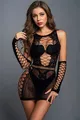 Body sexy féminin avec mini robe de nuit et gants noirs