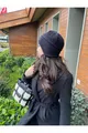 Bonnet d'hiver pour femme avec protection auditive noire, polaire imperméable pour l'extérieur