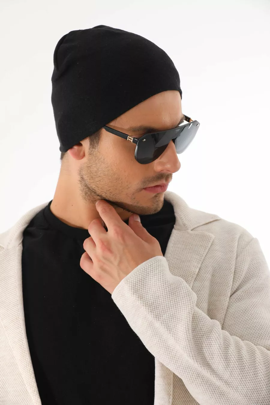 Bonnet en coton noir pour homme