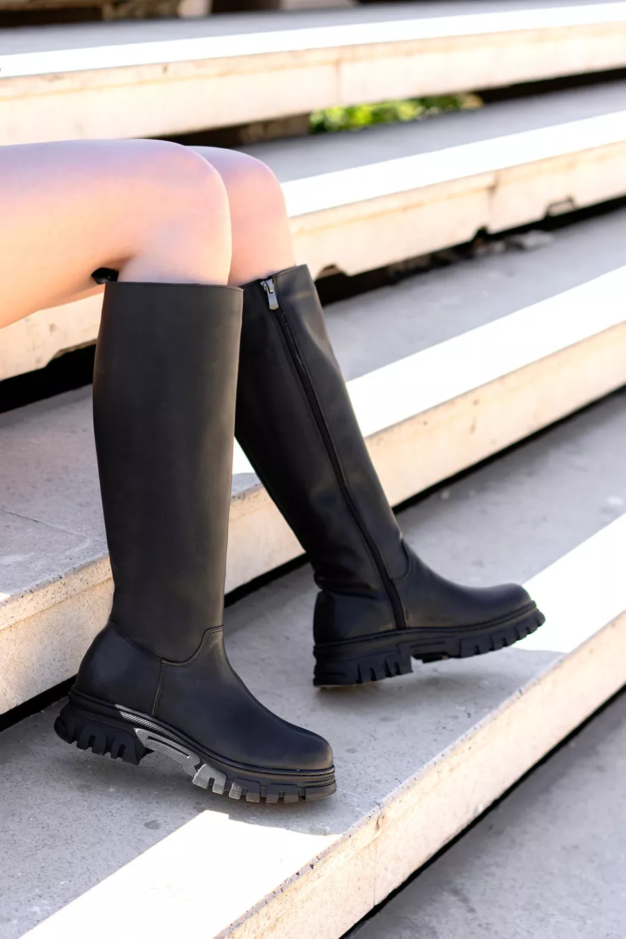 Botte noire avec semelle intérieure orthopédique en fourrure, flexible et garantie, semelle en caoutchouc antidérapante et imperméable