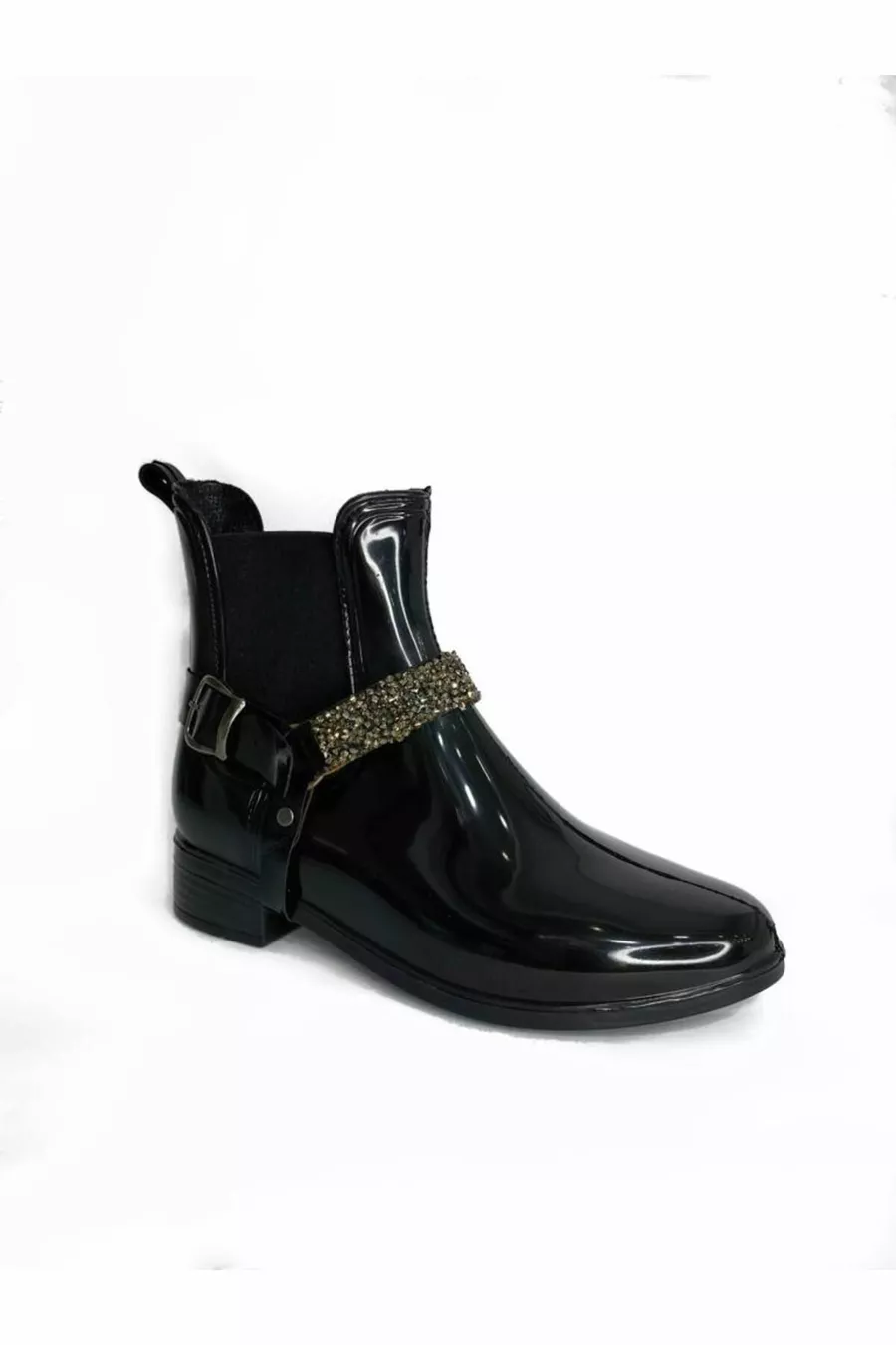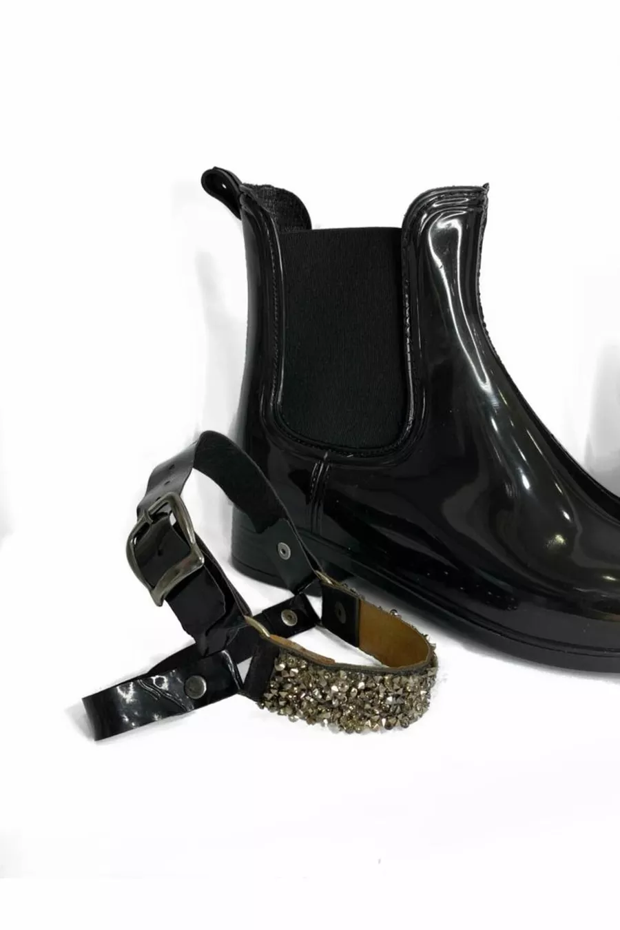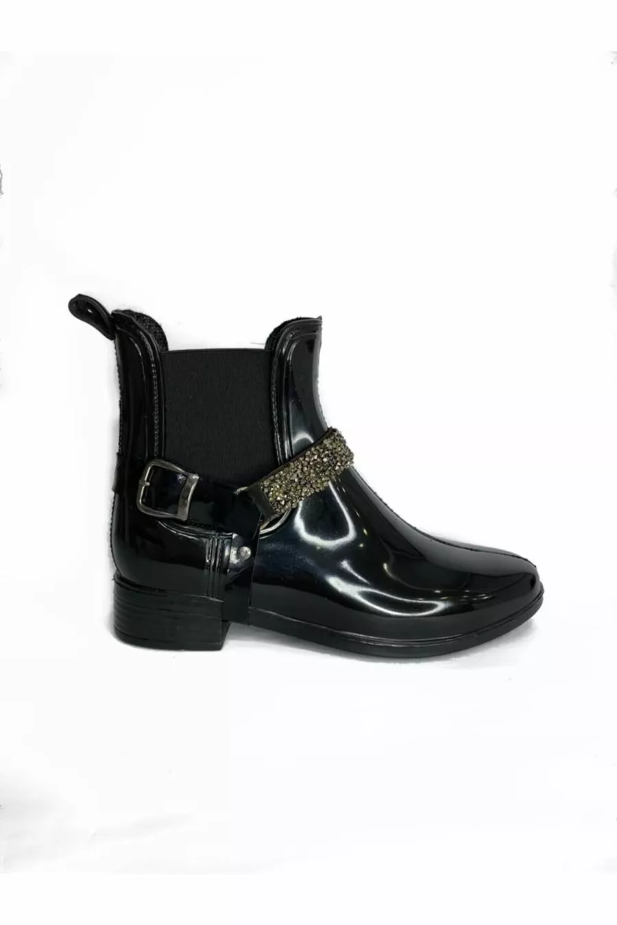 Bottes de pluie élastiques ceinturées noires pour femmes