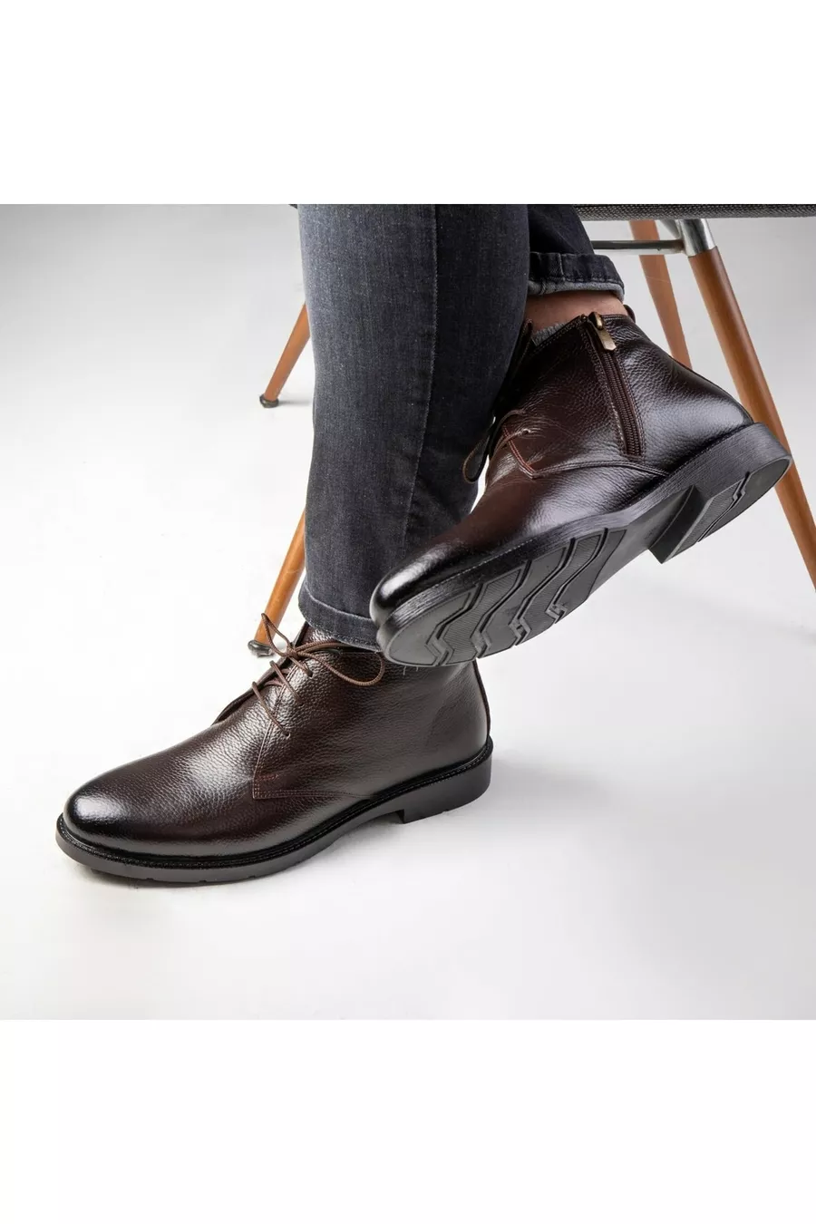 Bottes longues pour hommes Jaka en cuir véritable avec semelle en caoutchouc, bottes à col montant, bottines