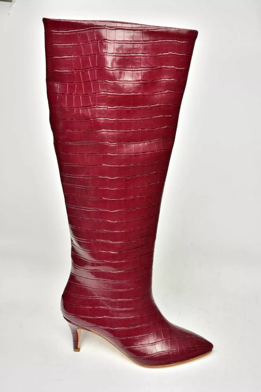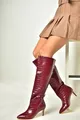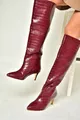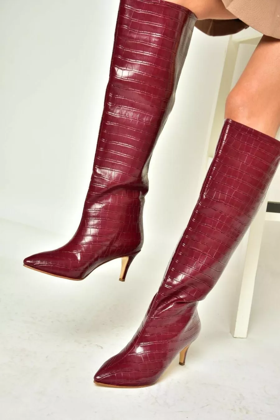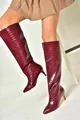 Bottes à talons bas à imprimé croco bordeaux pour femme