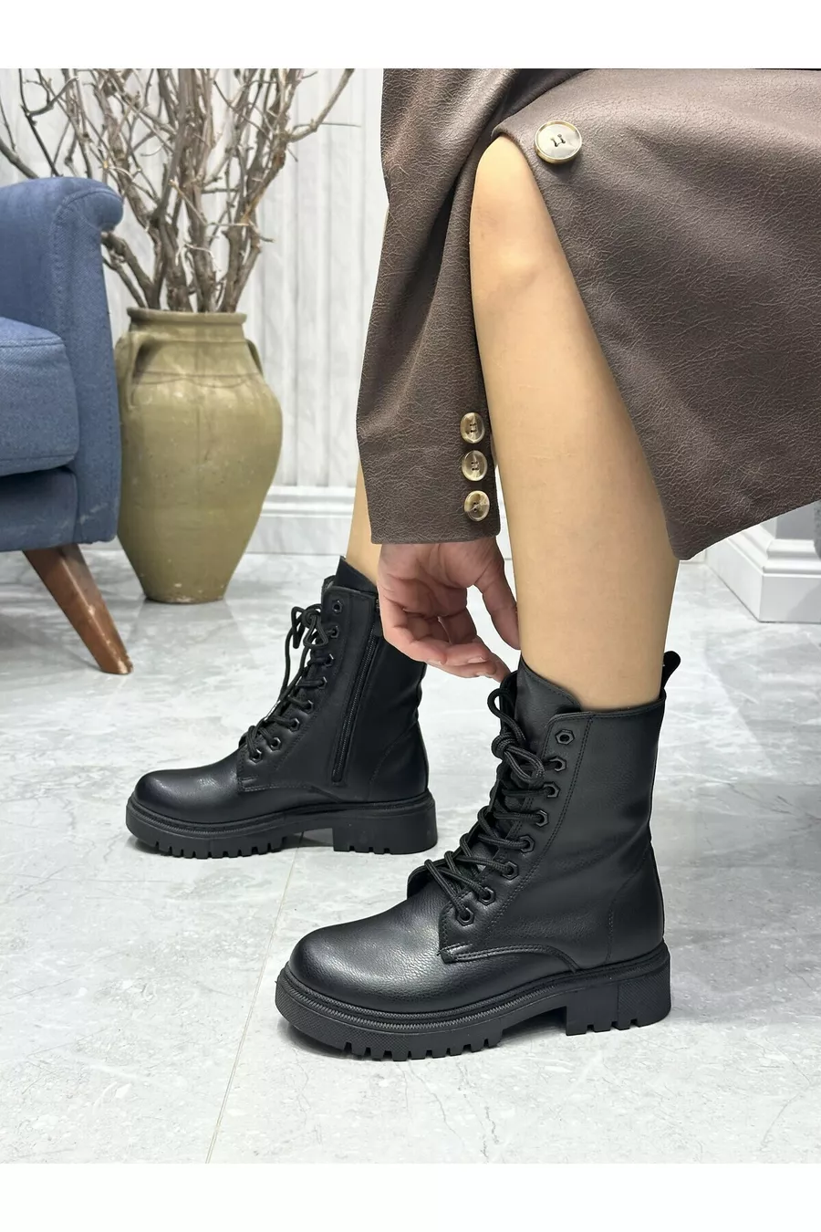 Motif : Uni État de la boîte : Avec boîte Domaine d'utilisation : Quotidien Matériau de la tige : Similicuir Type de fermeture : Lacets Matériau : Similicuir Type de talon : Talon plat Hauteur du talon : Talon moyen (5-9 cm) Couleur : Noir Matériau extérieur : Similicuir Technologie du tissu : Résistant à l'eau Matériau de la semelle : Thermoplastique Matériau de la semelle intérieure : Similicuir Matériau de la doublure : Similicuir Persona : Cool & Comfort Caractéristique supplémentaire : Aucune caractéristique supplémentaire Composant du matériau : Similicuir Instructions de lavage : Type 4 Détail du produit : Similicuir Type de bout : Rond Environnement : Décontracté/Quotidien Origine : TR Saison : Hiver Forme : Bottes
