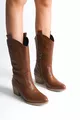 Bottes Western Cowboy femme en cuir fauve avec broderie et fermeture éclair