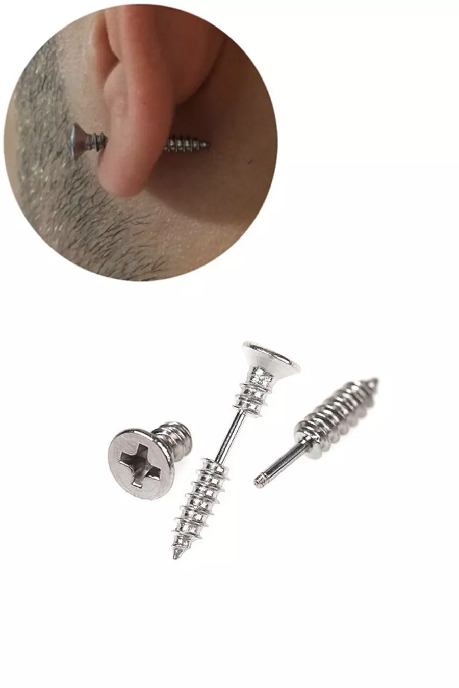 Boucles d'oreilles en acier double gris en forme de vis pour femmes et hommes by