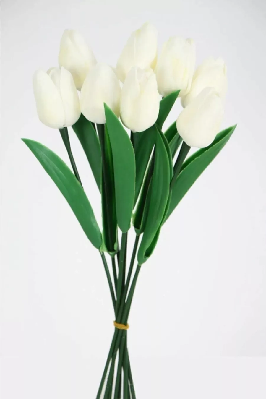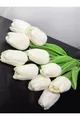 Bouquet de tulipes artificielles luxueuses 8 pièces en tissu réaliste blanc cassé pour la Saint-Valentin