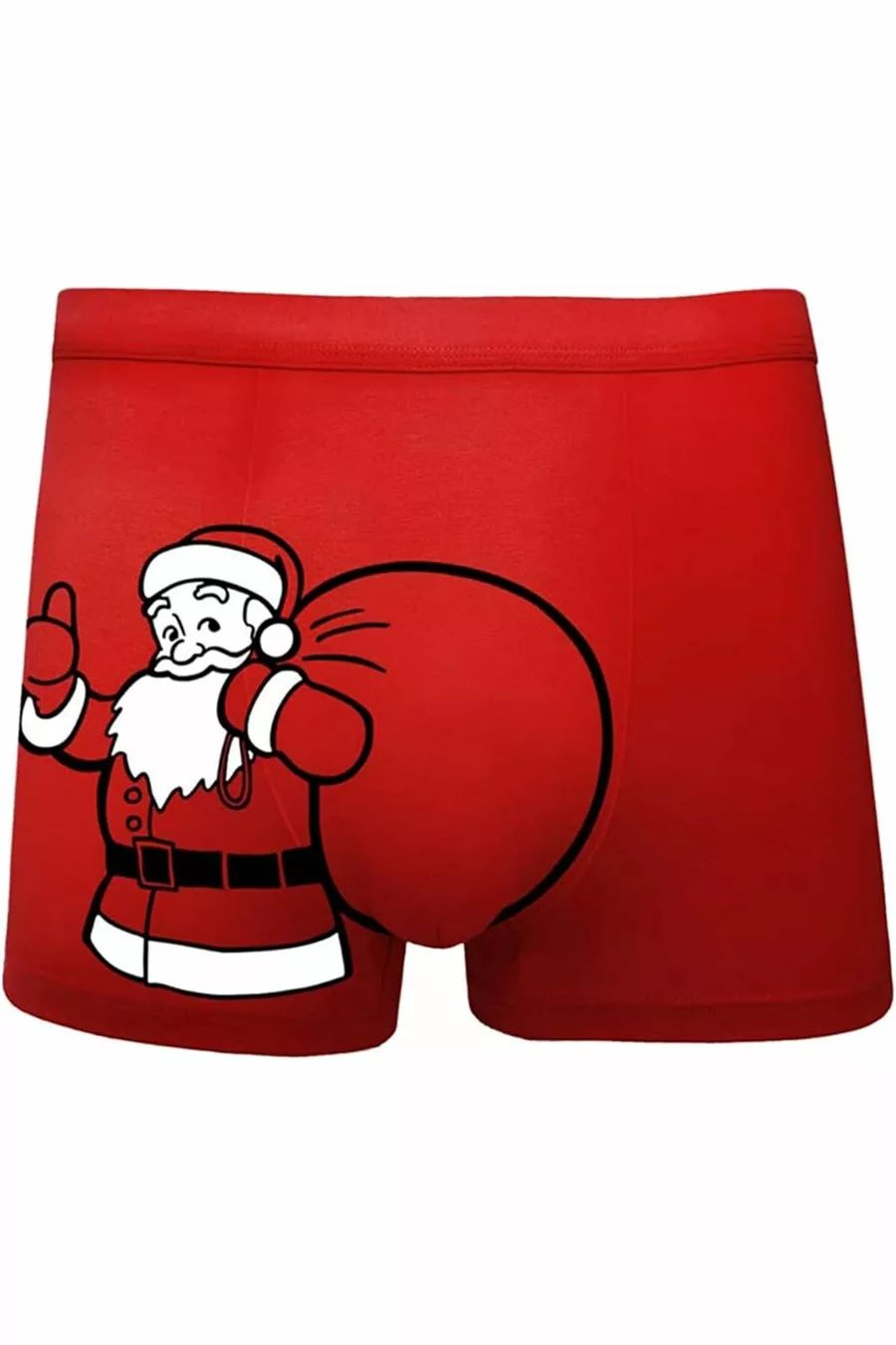 Boxer rouge pour homme en coton avec imprimé humoristique du Père Noël, spécial Nouvel An