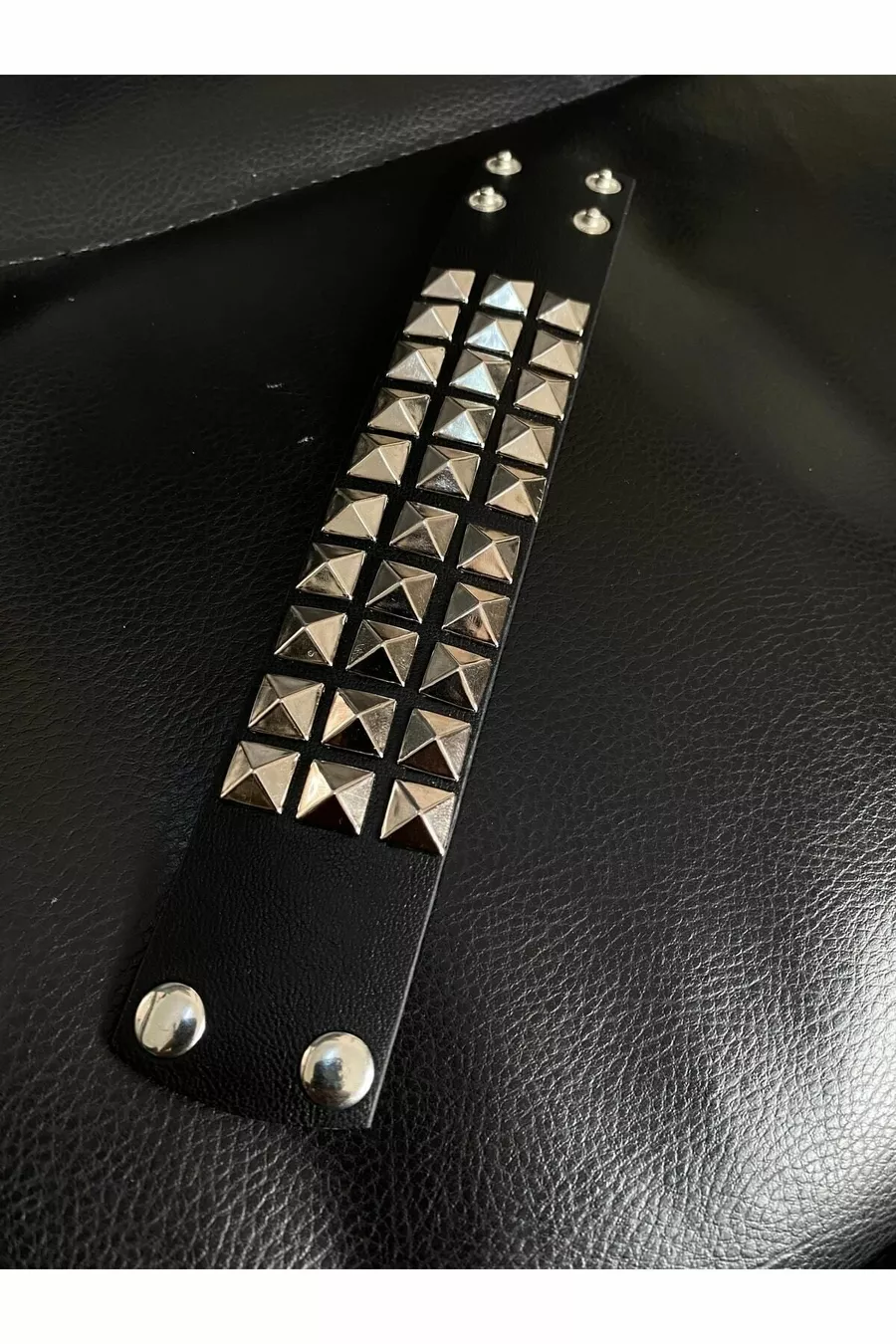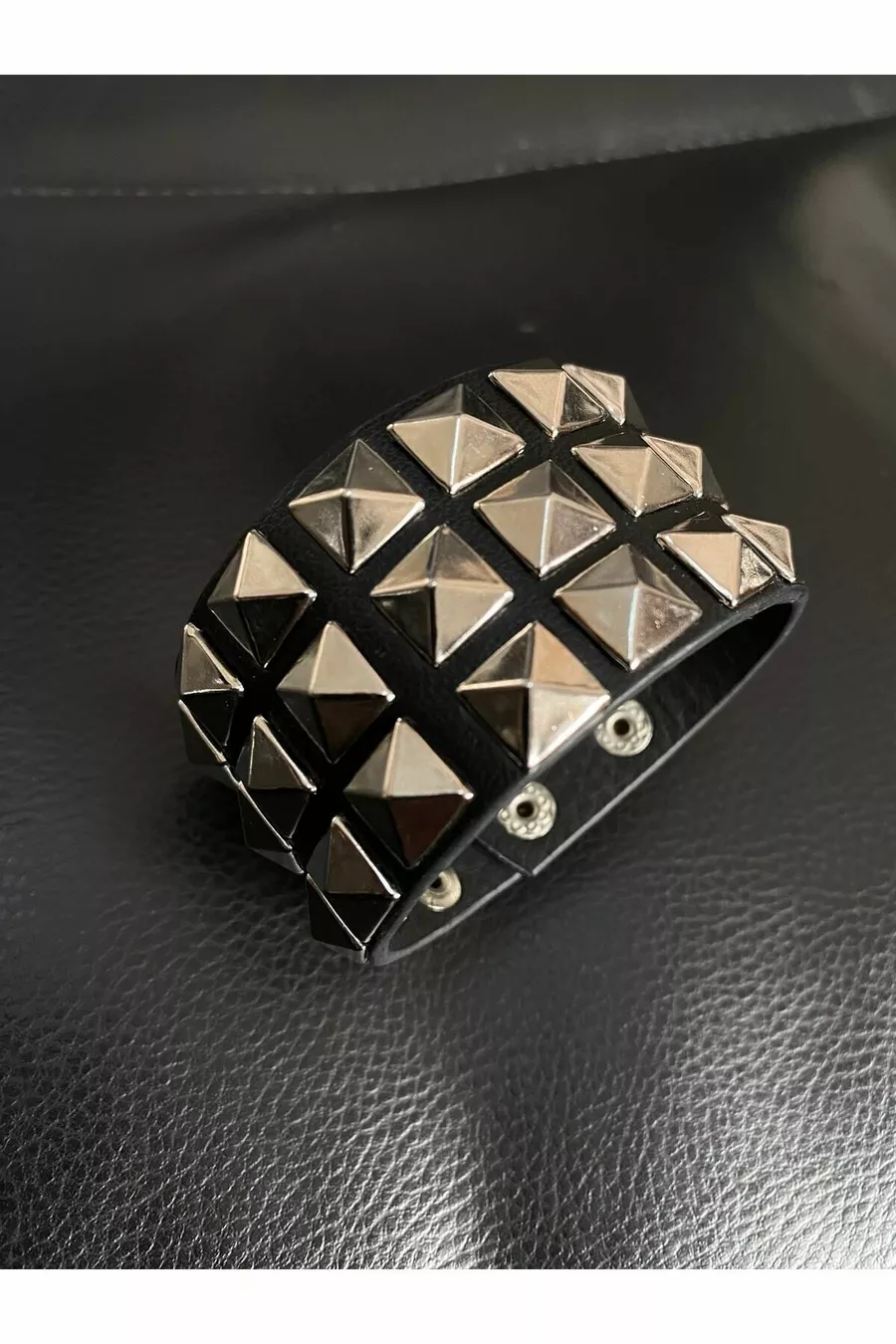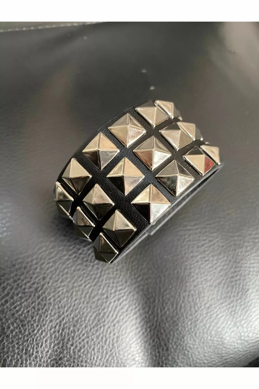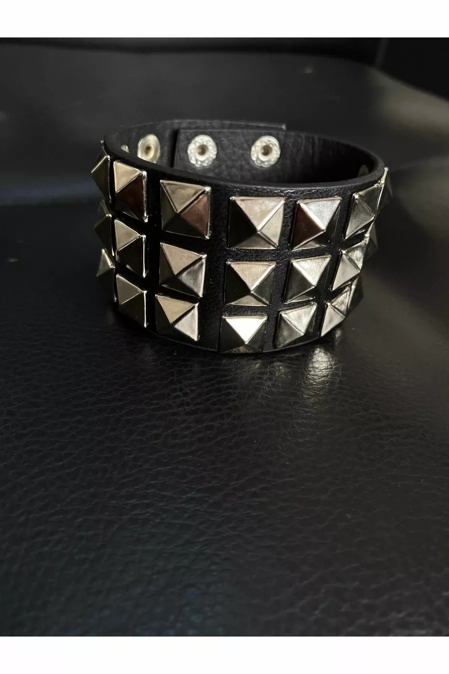 Bracelet gothique métal à pyramide à trois rangs 4 cm, cm