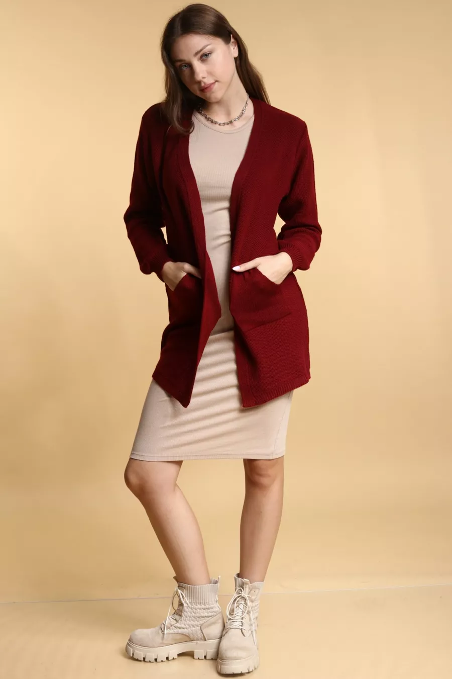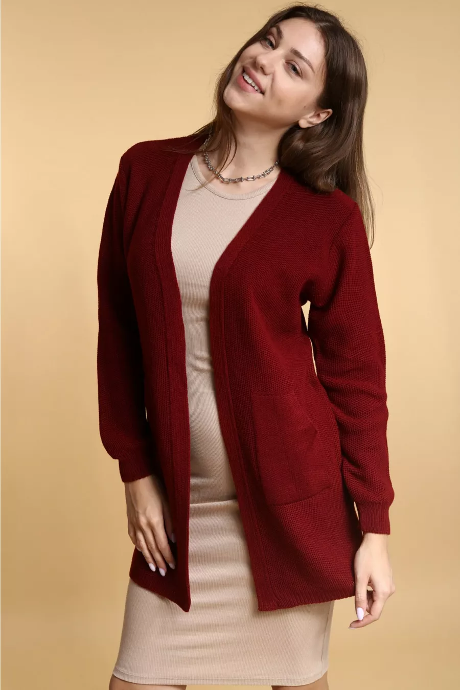 Cardigan en tricot saisonnier bordeaux pour femme