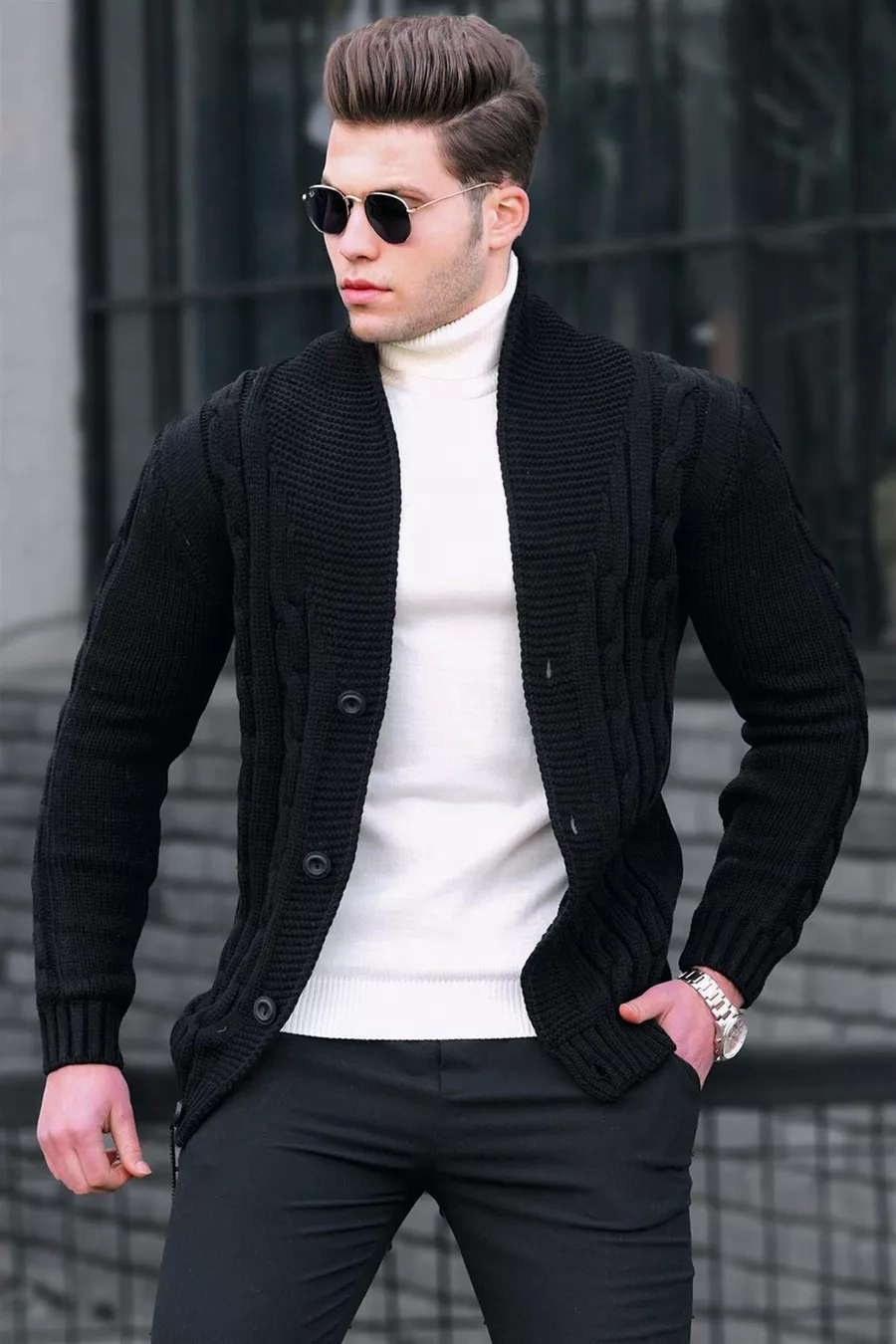 Cardigan Noir Tressé