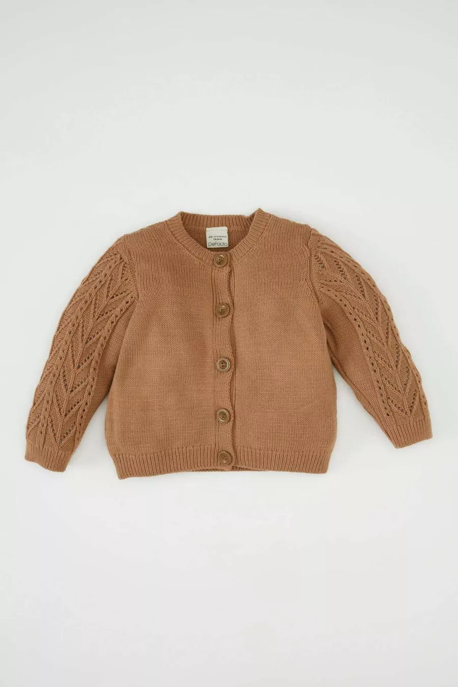 Cardigan pour bébé fille en tricot basique uni à col rond avec boutons AU