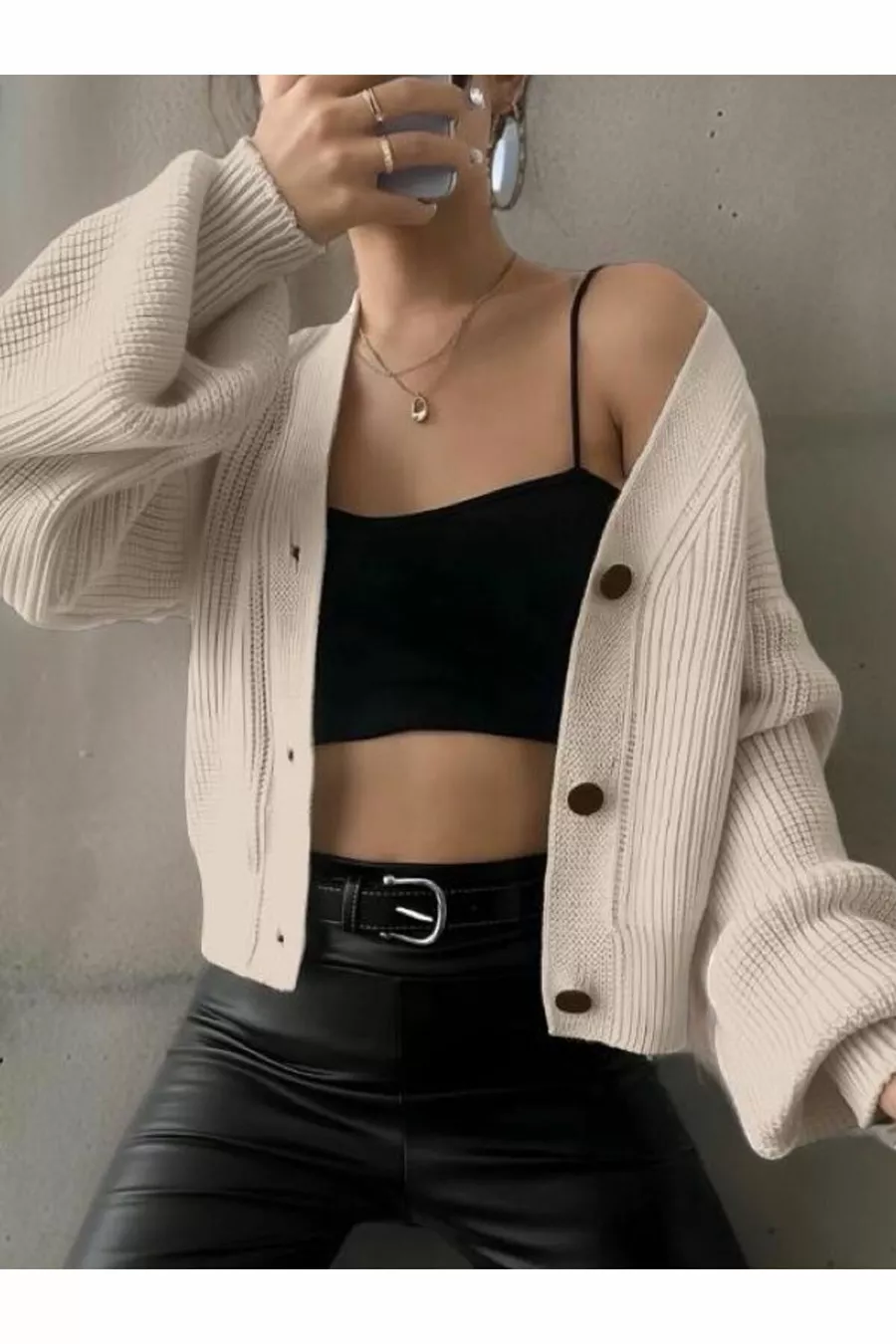 Matériel : Acrylique Type de manche : Manche longue Motif : Uni Coupe : Oversize Couleur : Écru Type de tissu : Tricot Type d'encolure : En V Détail du produit : Avec boutons Type de produit : Uni Poche : Sans poche Longueur des manches : Longue Collection : Basique Épaisseur : Moyenne Taille : Standard Silhouette : Relaxed Style : Classique Caractéristique supplémentaire : Aucune caractéristique supplémentaire Technique d'impression/broderie : Sans impression Type de fermeture : Boutonné Nombre de pièces : 1 Persona : Cool & Confort Détail sur la durabilité : Oui Type de tissage : Selanik État ceinture/sangle : Sans ceinture Composition du matériau : 100 % acrylique Instructions de lavage : Type1 Laver à la main à l'eau froide / Sécher à l'air / Ne pas utiliser d'eau de Javel / Ne pas nettoyer à sec / Ne pas repasser. Saison : Toutes saisons Origine : TR État de la boîte : Pas de boîte