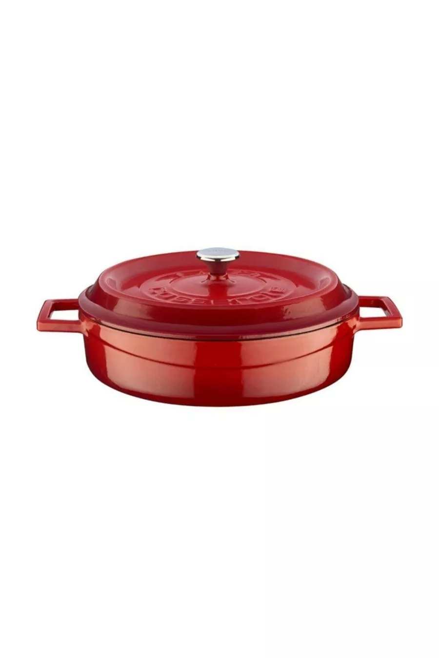 Couleur : Rouge Caractéristique : Fond antiadhésif Matériau extérieur : Fonte Matériau intérieur : Fonte Nombre de pièces : 1 pièce Instructions d'entretien (contact alimentaire) : Suivez les instructions d'entretien spécifiques au produit pour préserver sa durée de vie. Matériau : Fonte