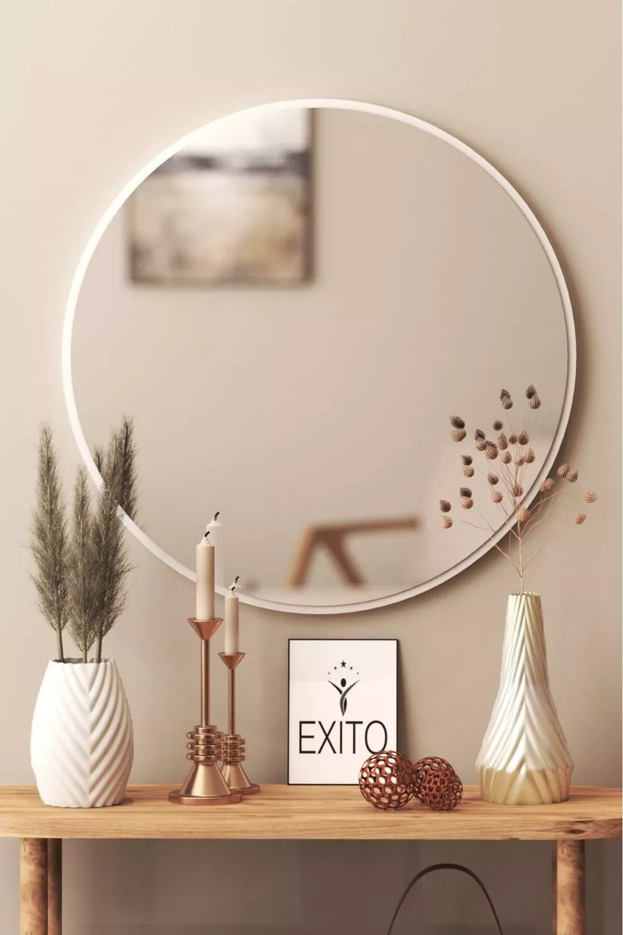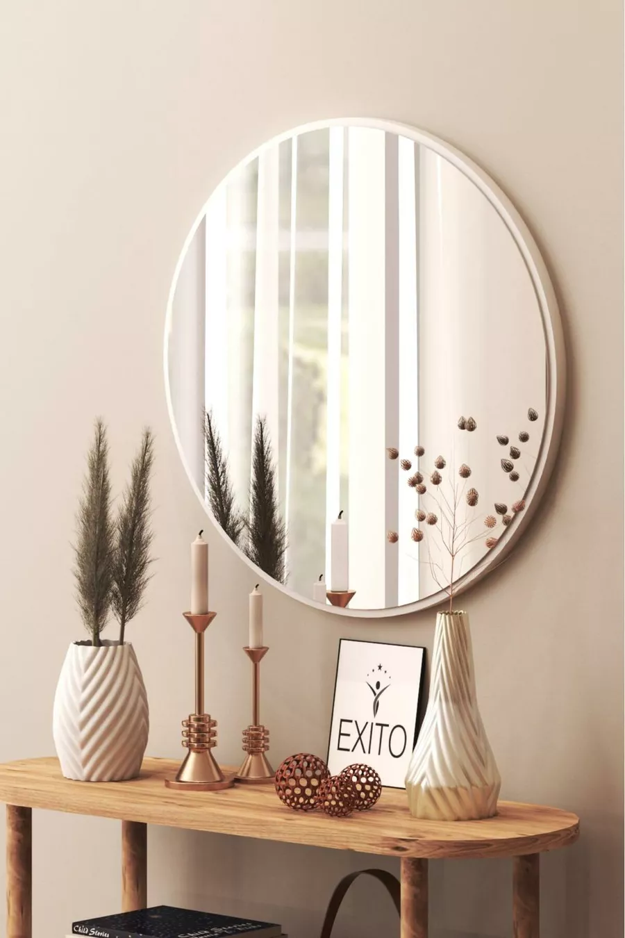 Matériel : Bois Couleur : Blanc Nombre de pièces : 1 pièce Forme : Rond Type : Miroir mural Origine : TR Caractéristique : Rond