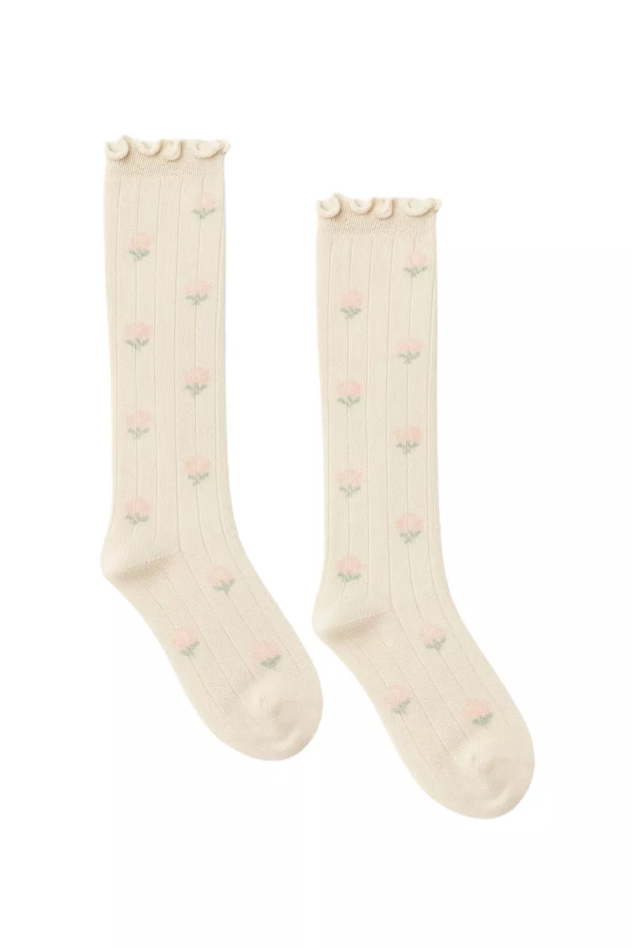 Chaussettes courtes pour bébé à motif floral beige