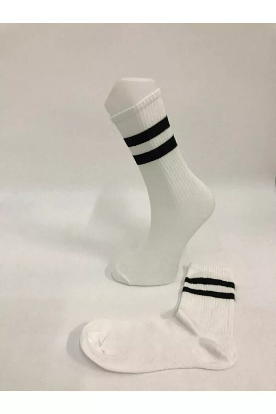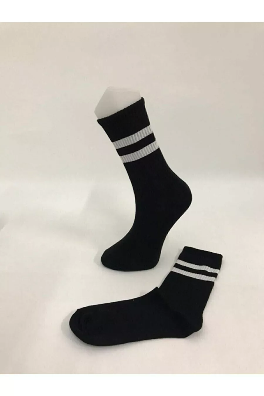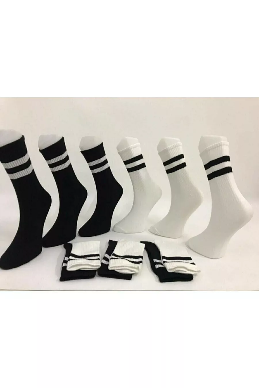 Chaussettes de tennis unisexes noires et blanches à rayures longues taille 6'