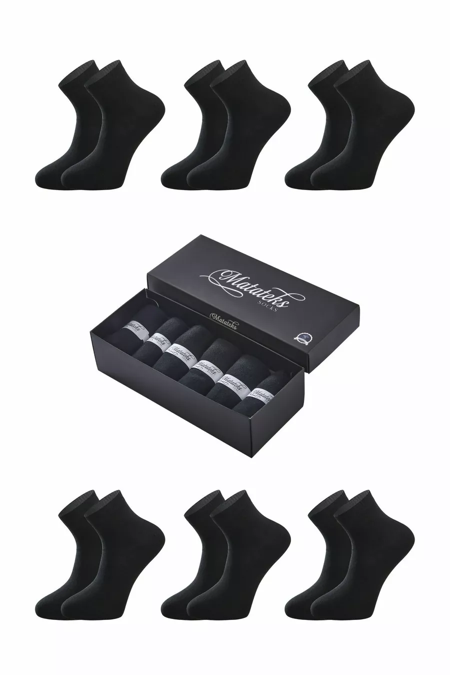 Chaussettes pour hommes en bambou mi-hautes noires unies, aiguilles, sans couture, premium, boîte de 6