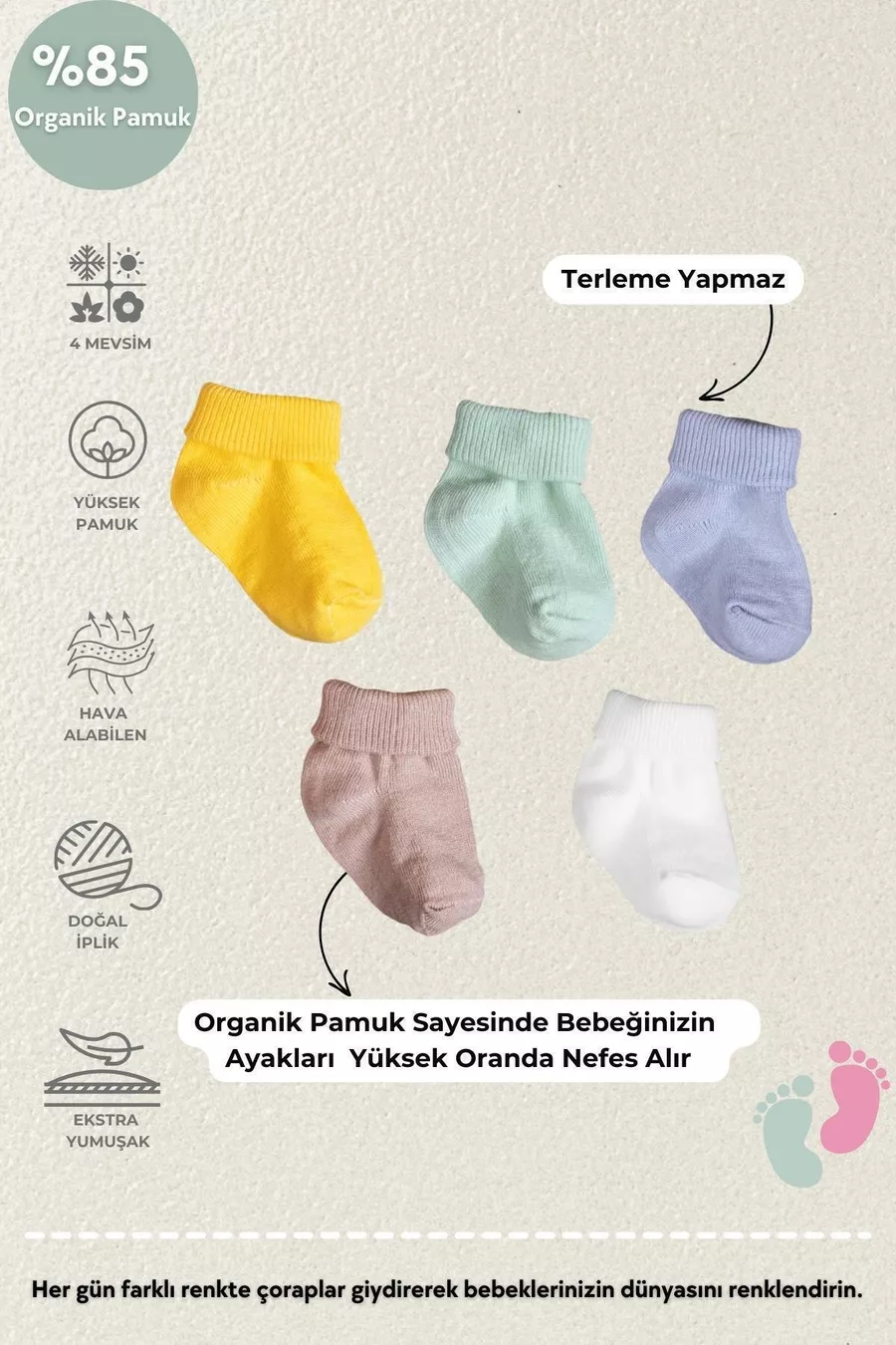 Chaussettes pour bébés nouveau-nés premium en coton biologique unisexes, lot de 5 avec boîte