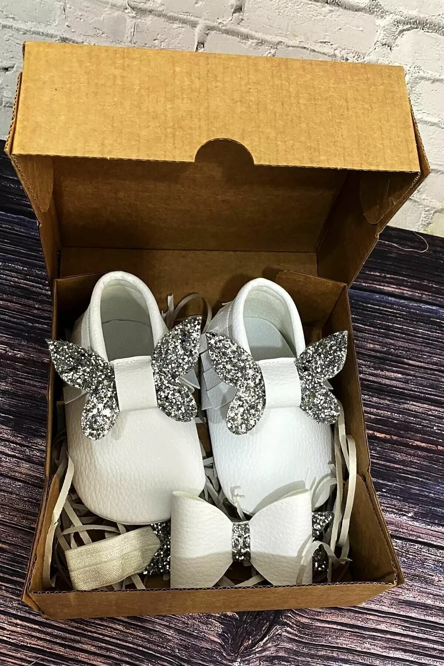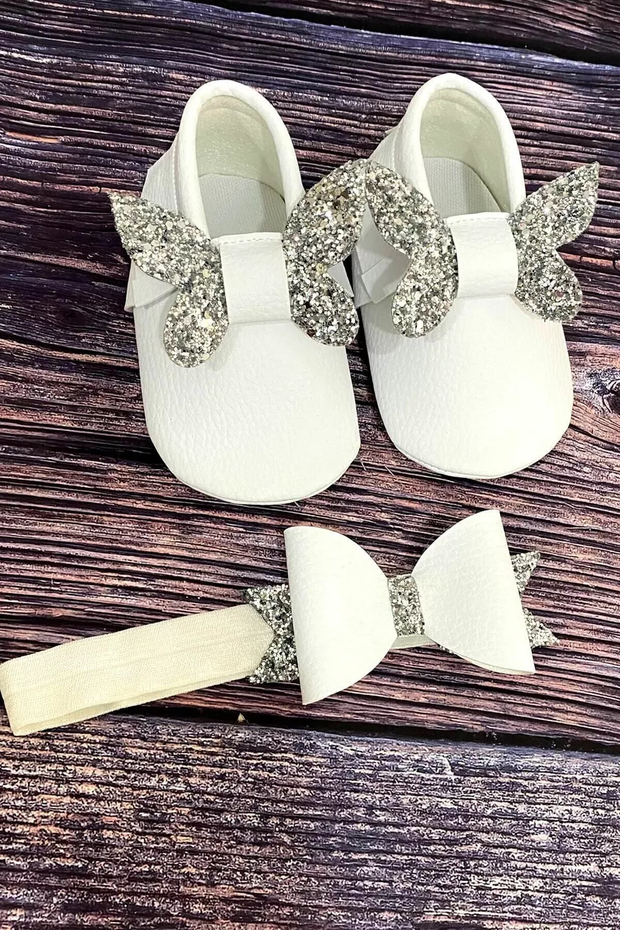 Chaussons Bébé Mocassins Blancs et Bandeau