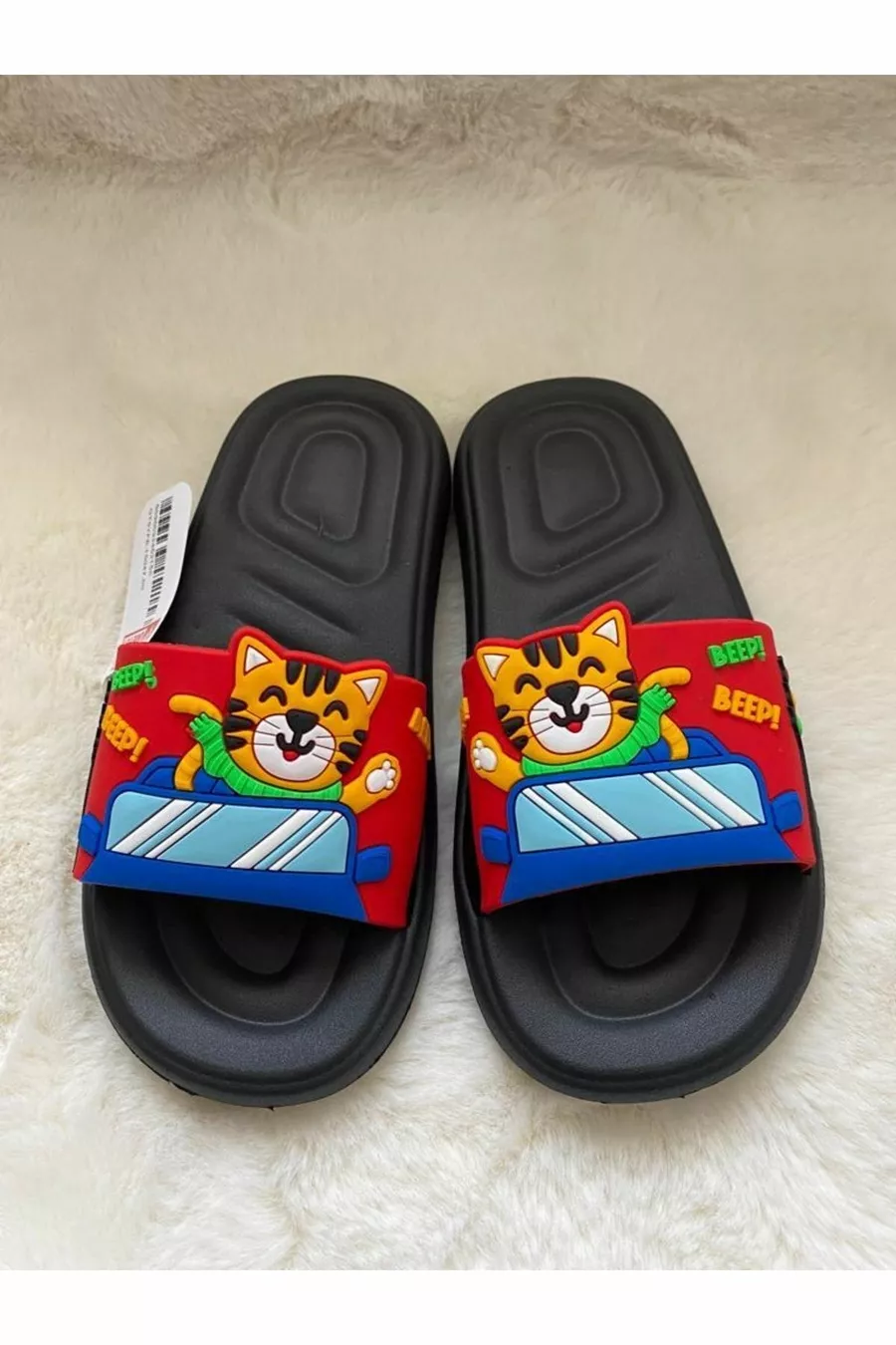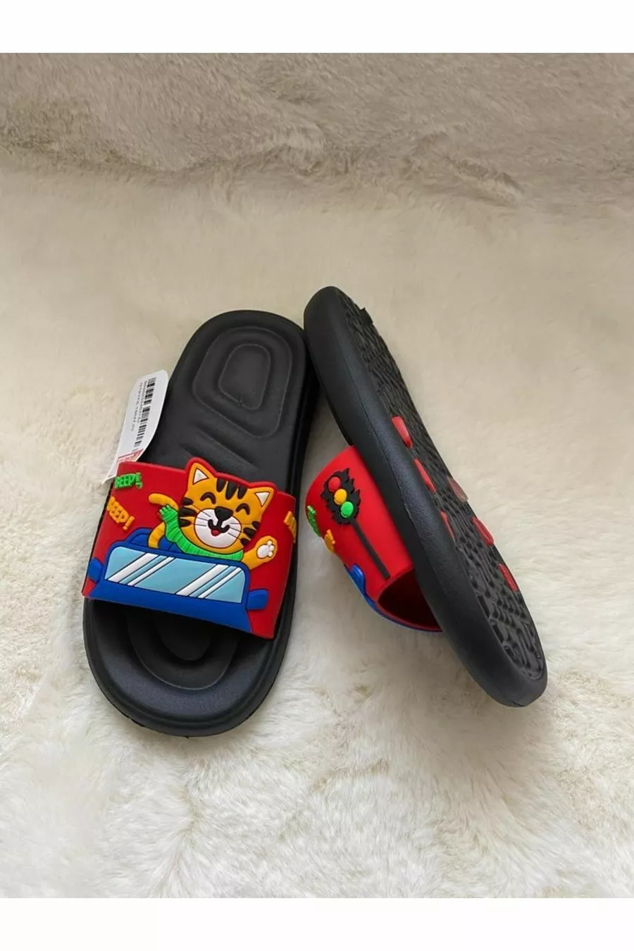 Chaussons pour enfants unisexes antidérapants avec motif de chat et voiture, rouge et bleu