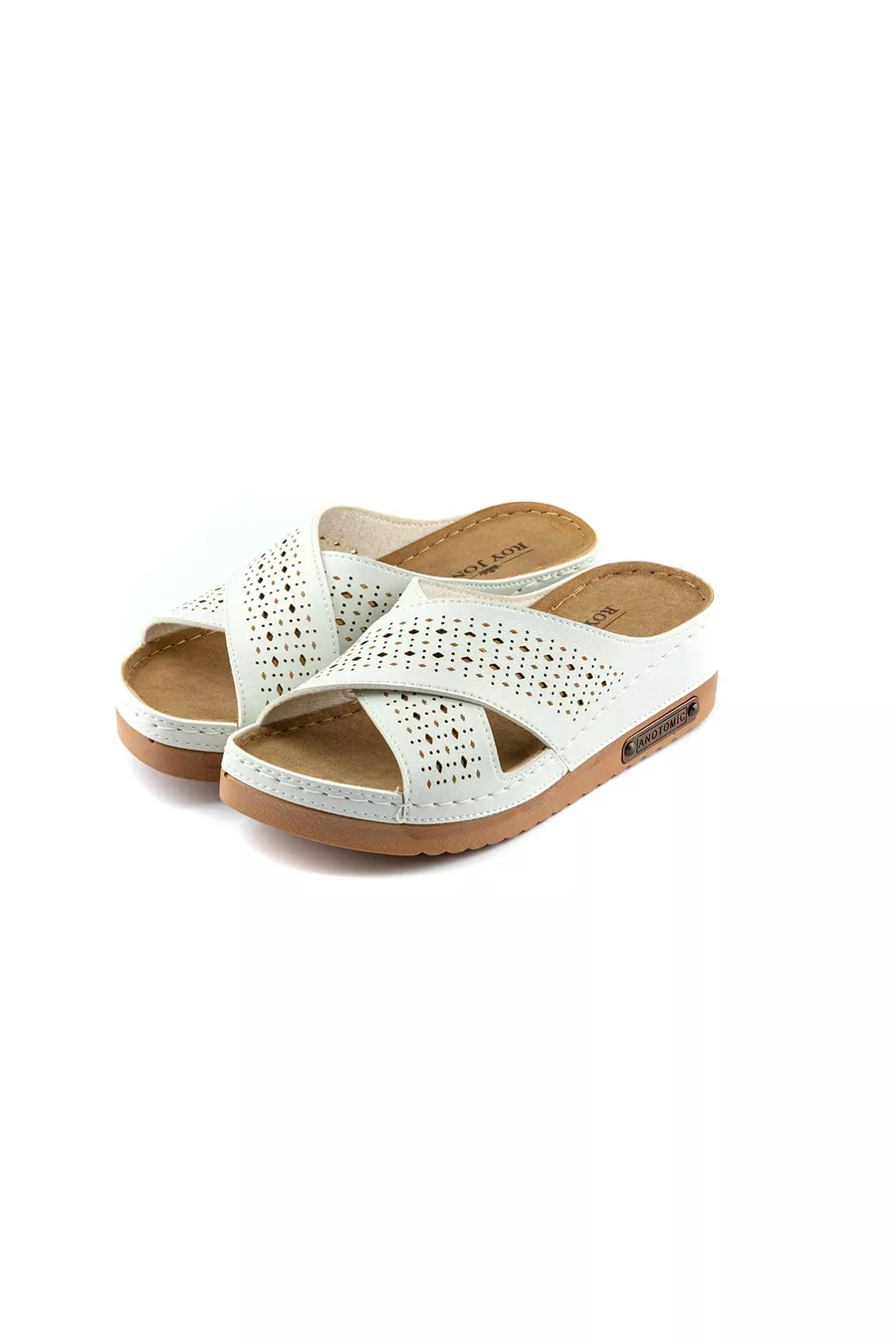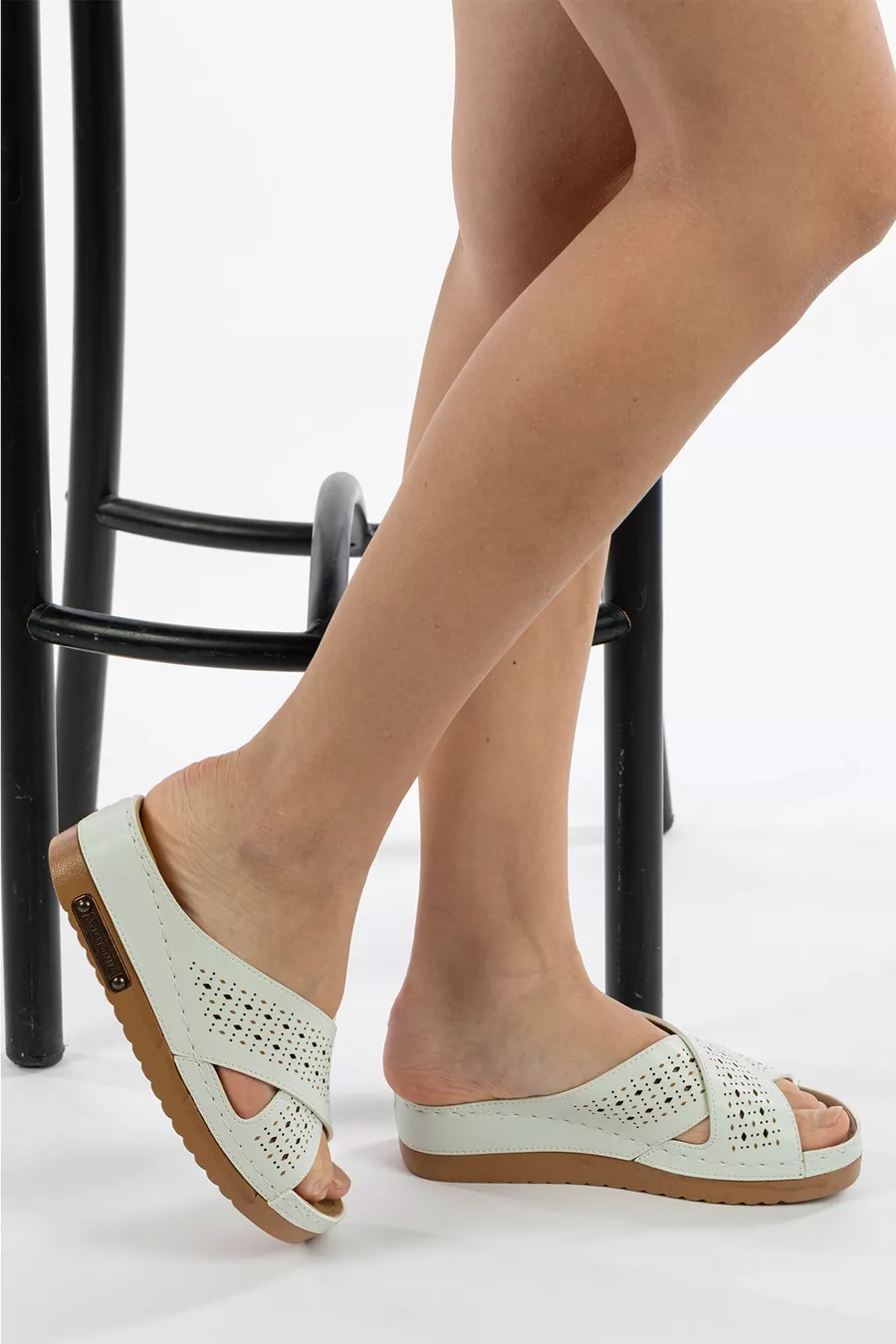 Chaussons pour femme à semelle douce orthopédique, respirants, à double bande, en style paille perforée, confortables, pour la maison