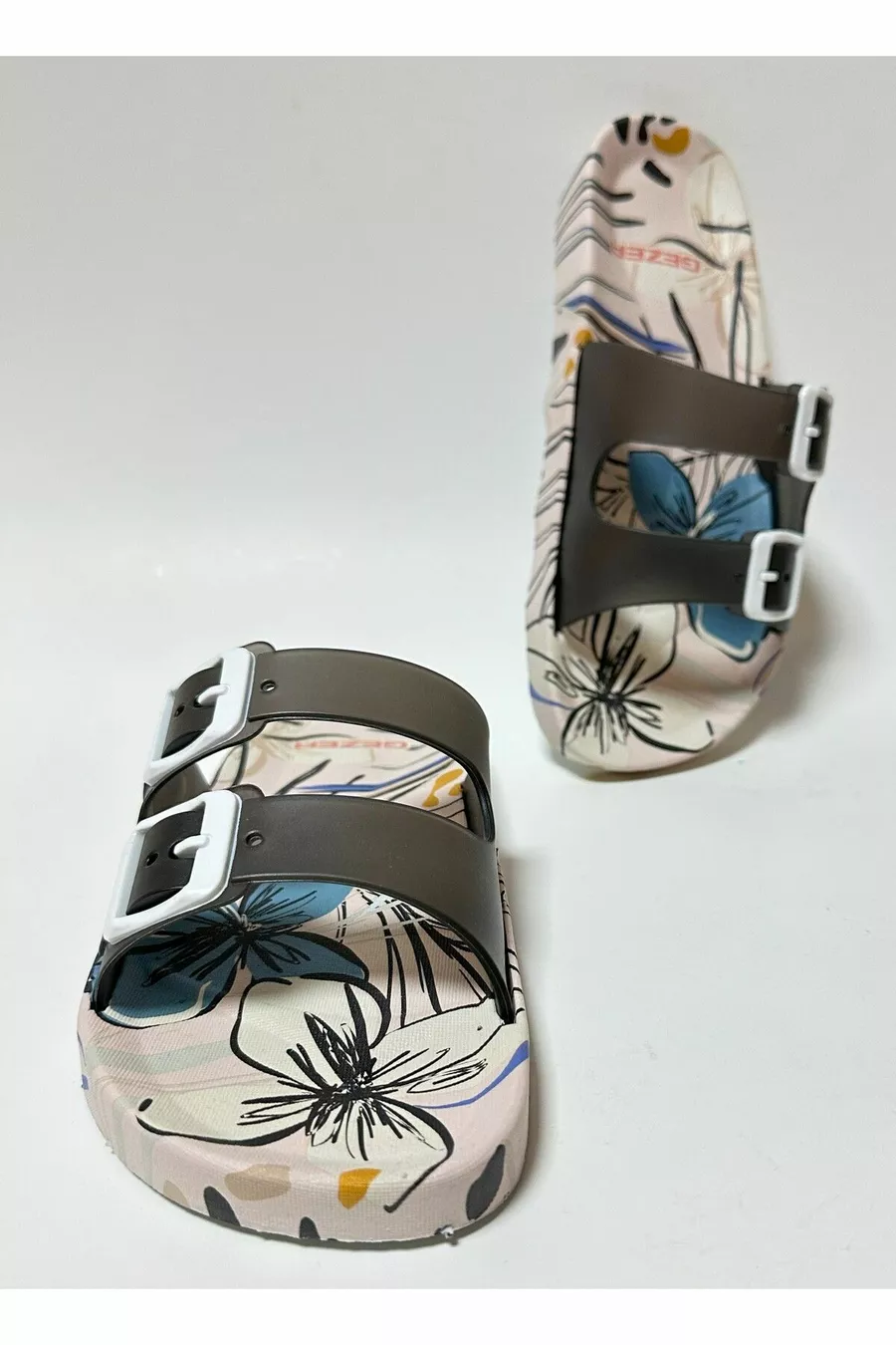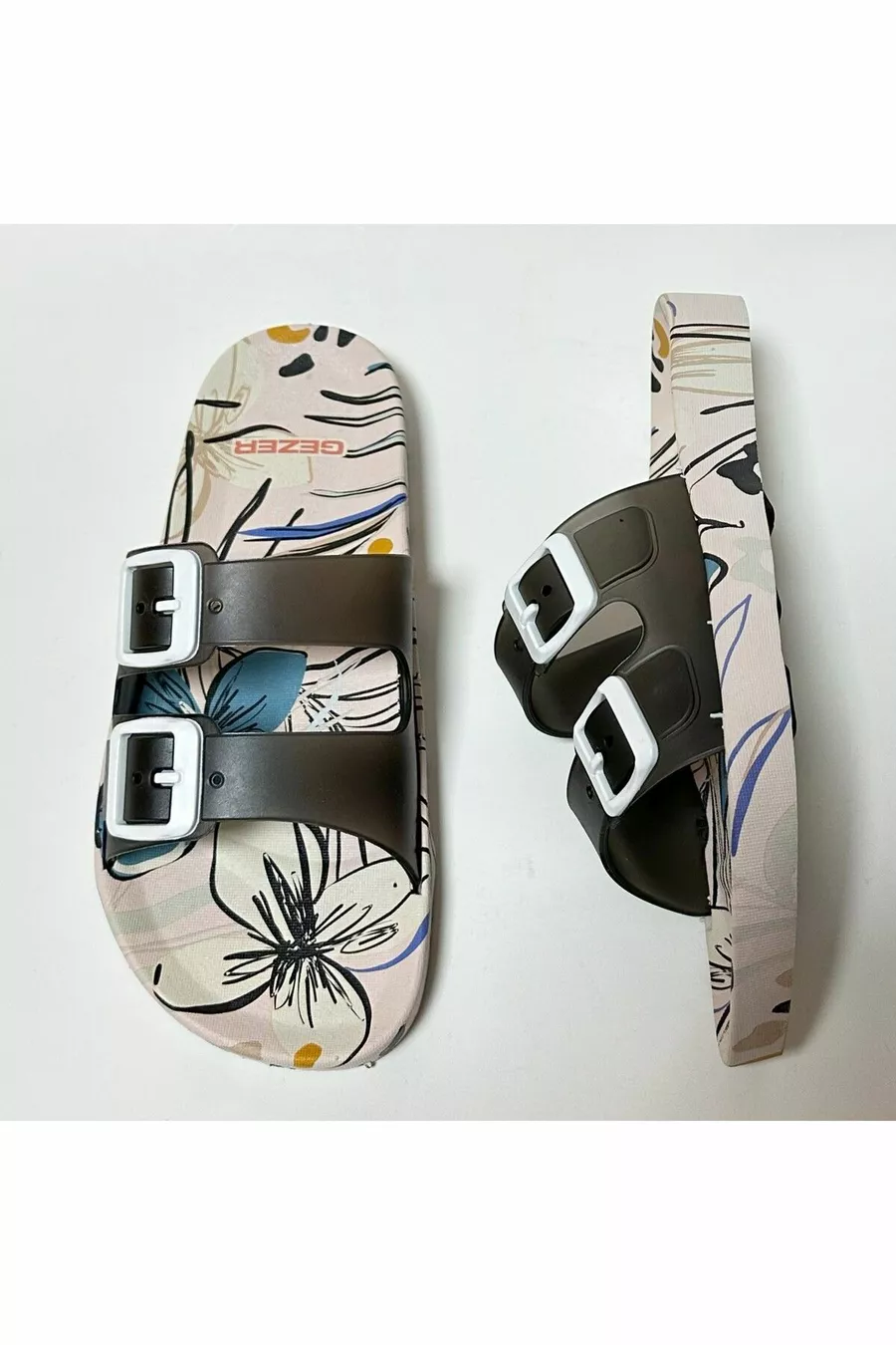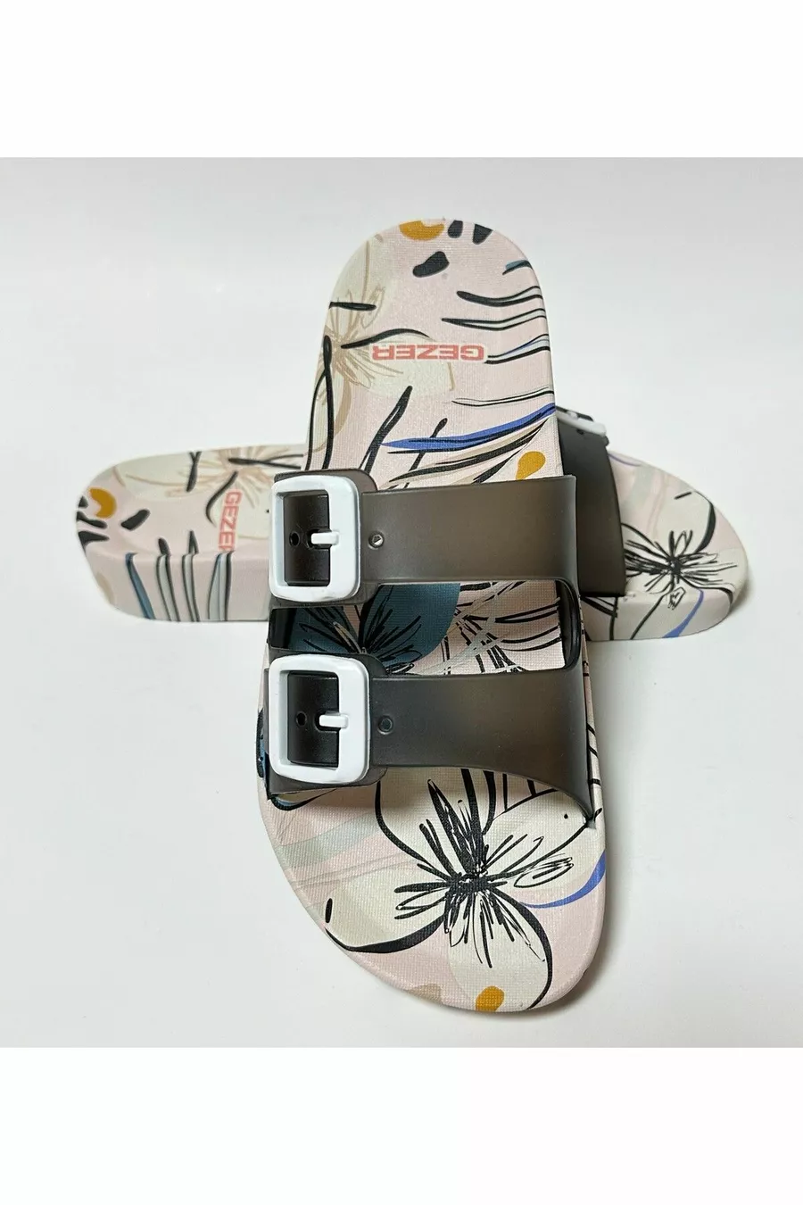 Chaussons pour femmes à semelle anatomique antidérapante, blanc, double bande, sans boucle, pour la maison, la rue, les invités et les sols humides