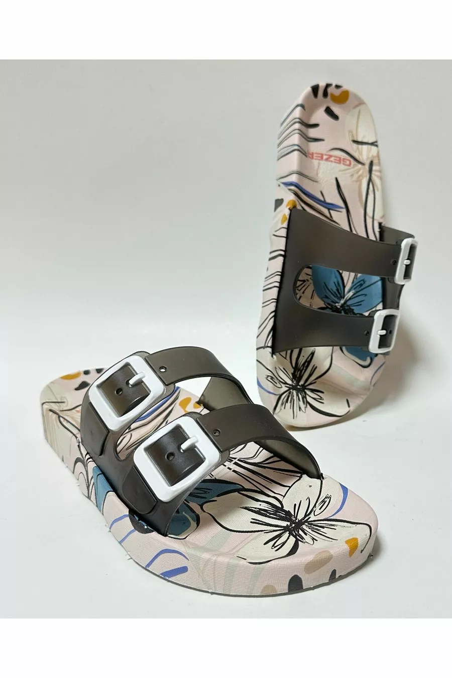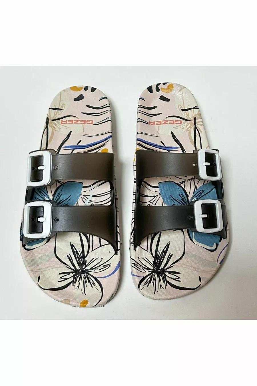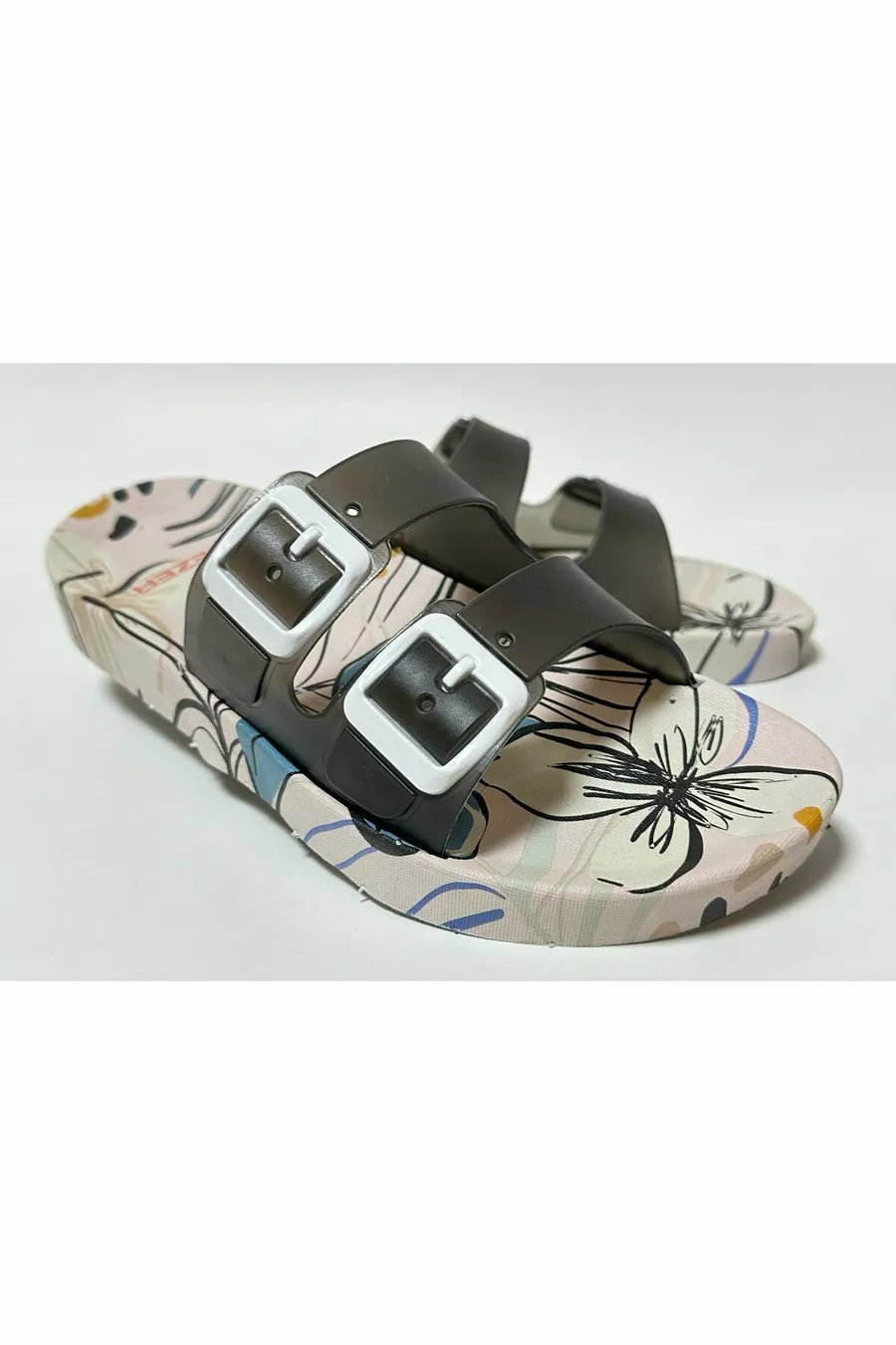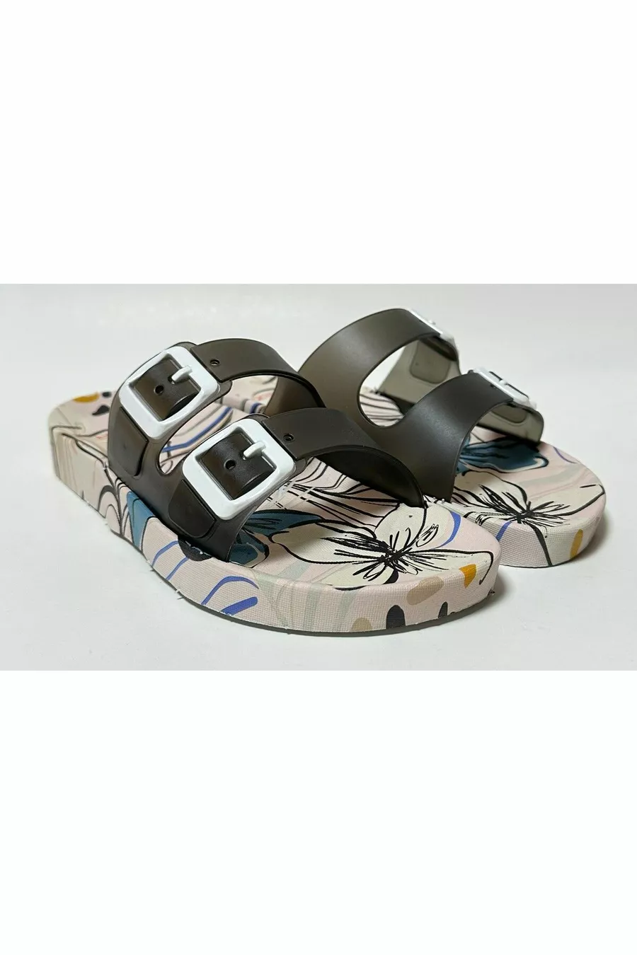 Chaussons pour femmes à semelle anatomique antidérapante, blanc, double bande, sans boucle, pour la maison, la rue, les invités et les sols humides
