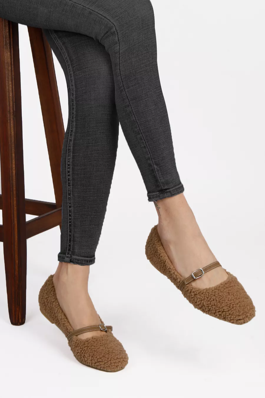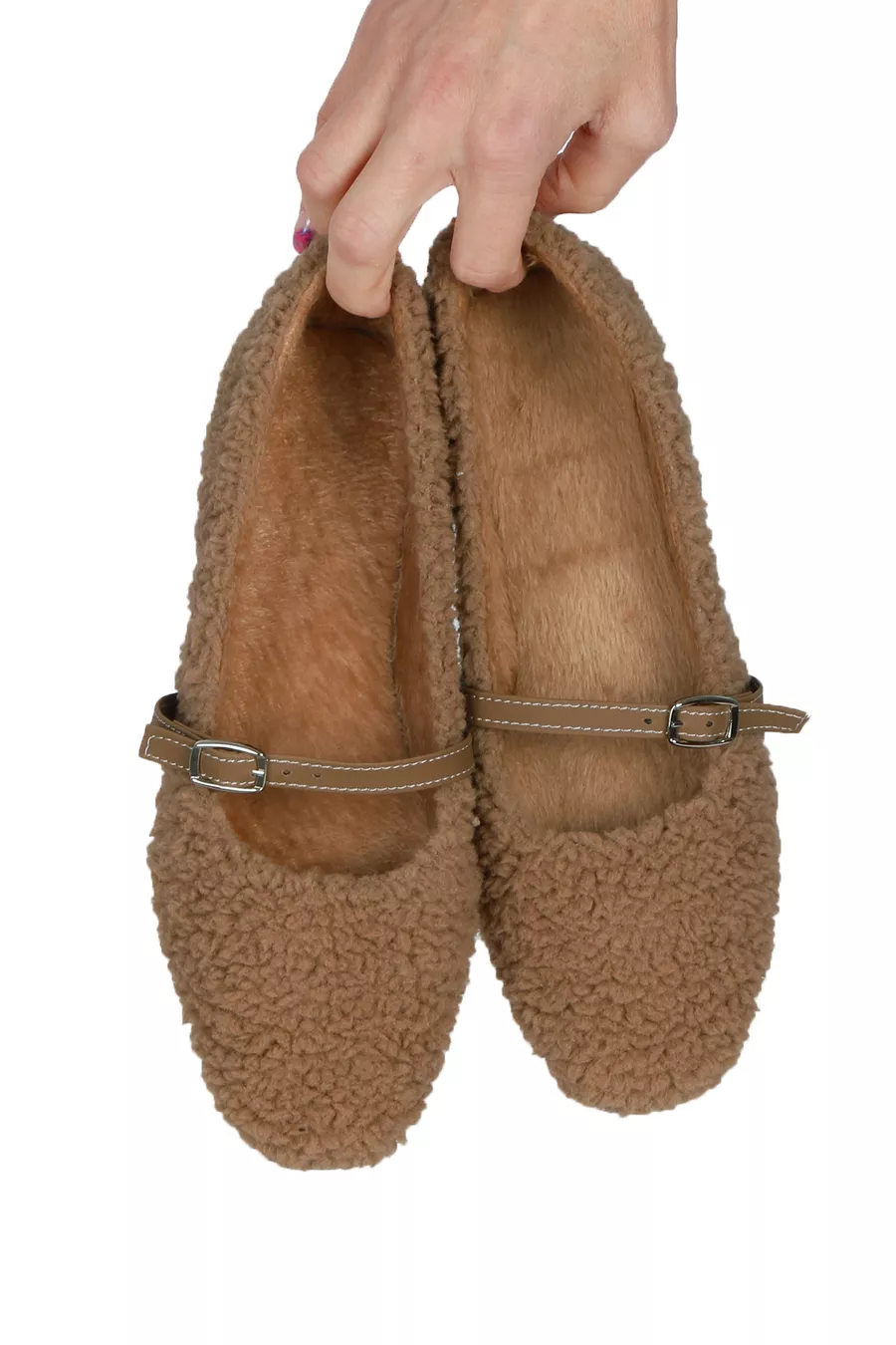 Chaussons pour femme en peluche avec lien à la cheville