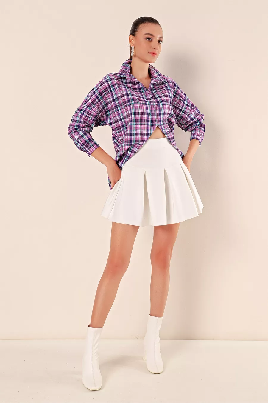 Coupe : Oversize Type de tissu : Tissé Couleur : Violet Matériau : Popeline Longueur : Long Origine : TR